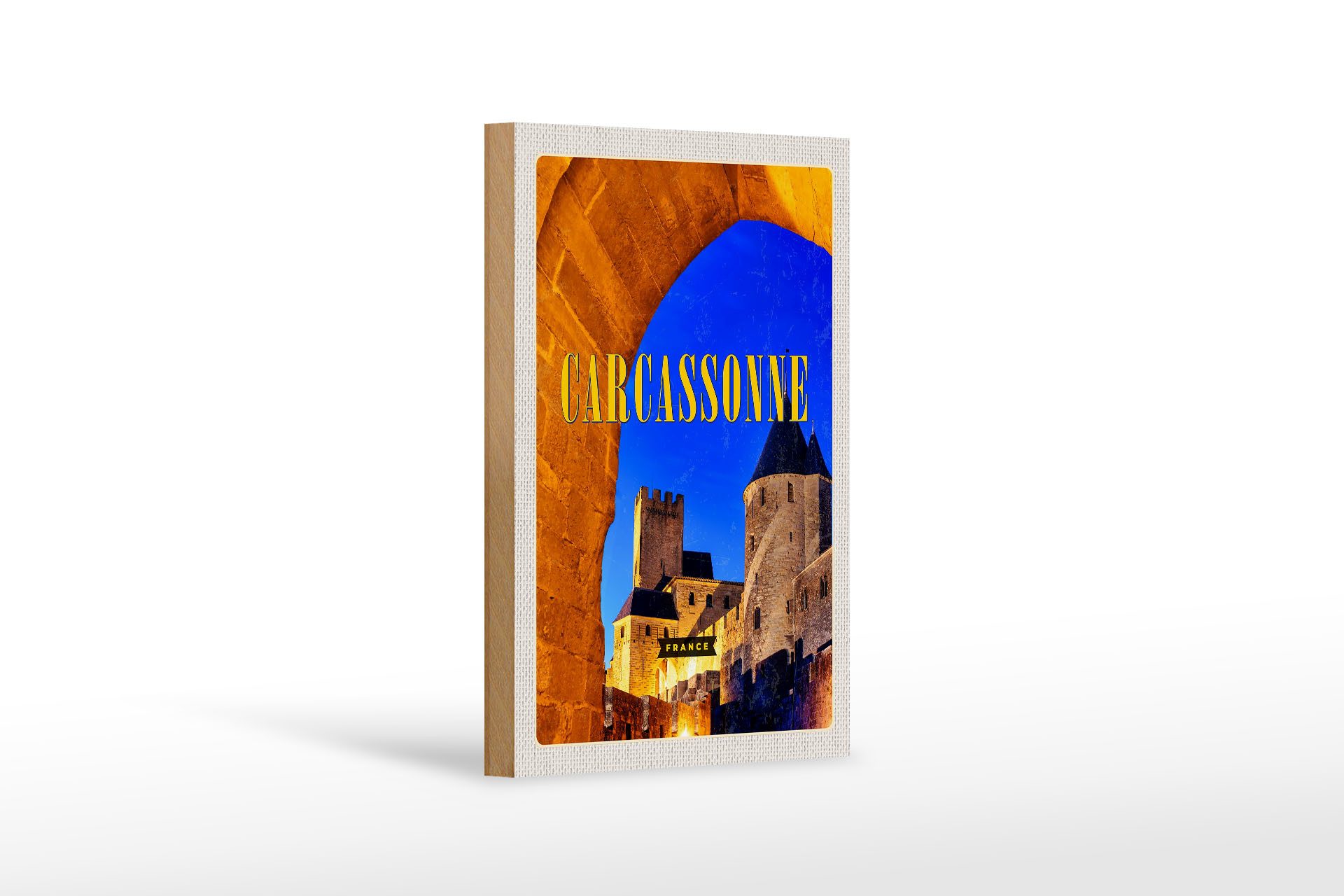 Holzbild Reise 12x18 cm Retro Carcassonne France Mittelalter