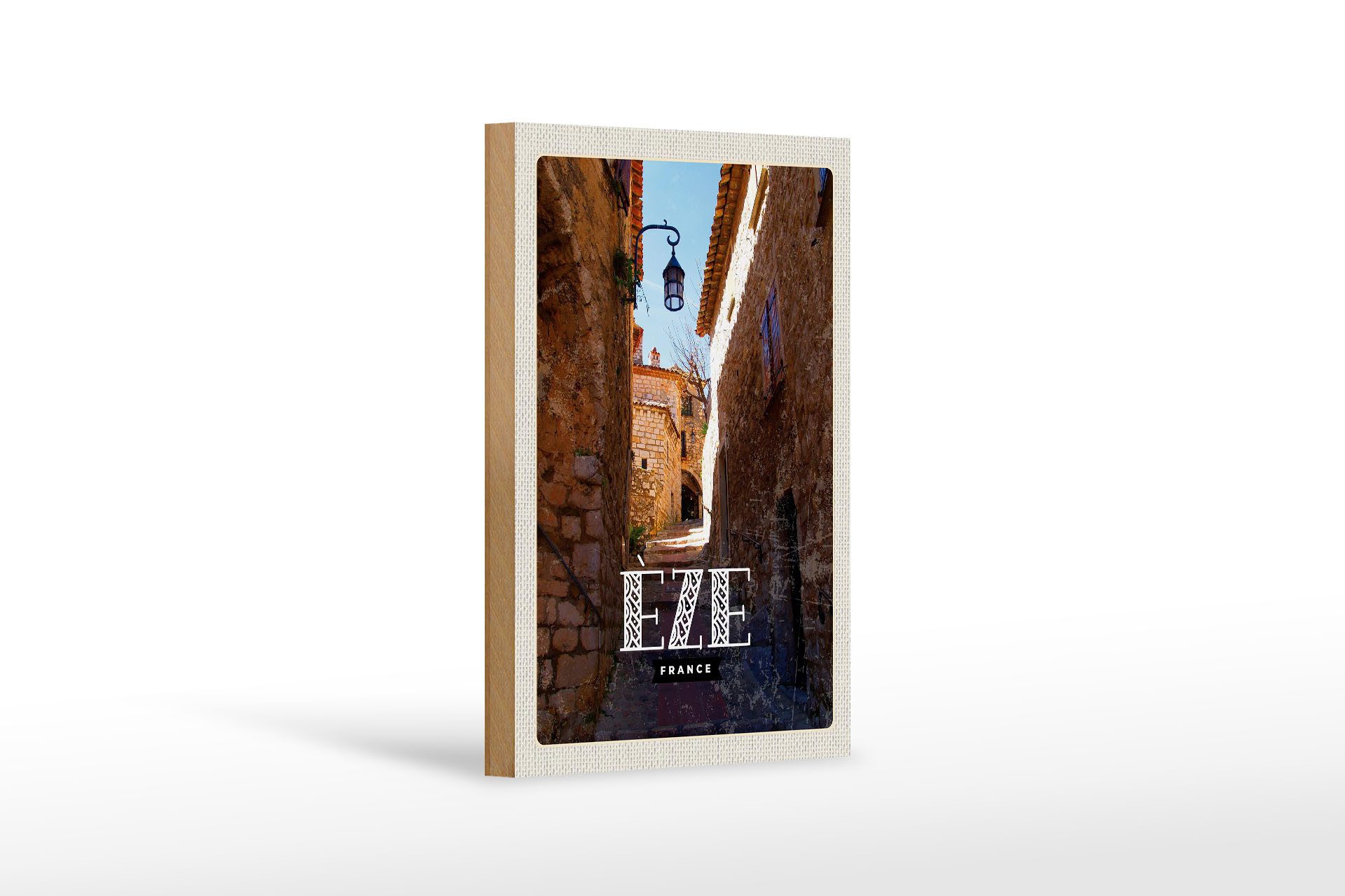 Femer GmbH Holzbild Reise 12x18 cm Retro Eze France Mittelalter Stadt, (1 St), Glatte Holzfaserplatte (MDF), vorn beschichtet