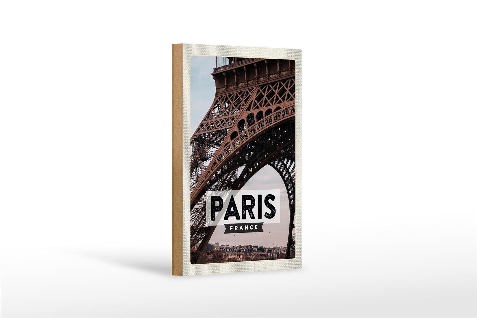 Femer GmbH Holzbild Reise 12x18cm Paris France Reiseziel Eiffelturm Schild, (1 St), Glatte Holzfaserplatte (MDF), vorn beschichtet