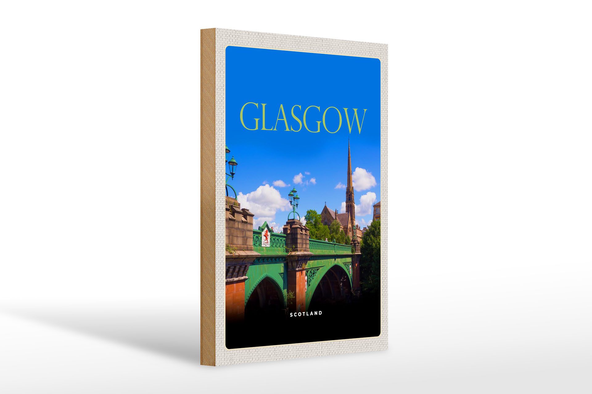 Holzbild Reise 20x30cm Glasgow Scotland mittelalterliche Brücke