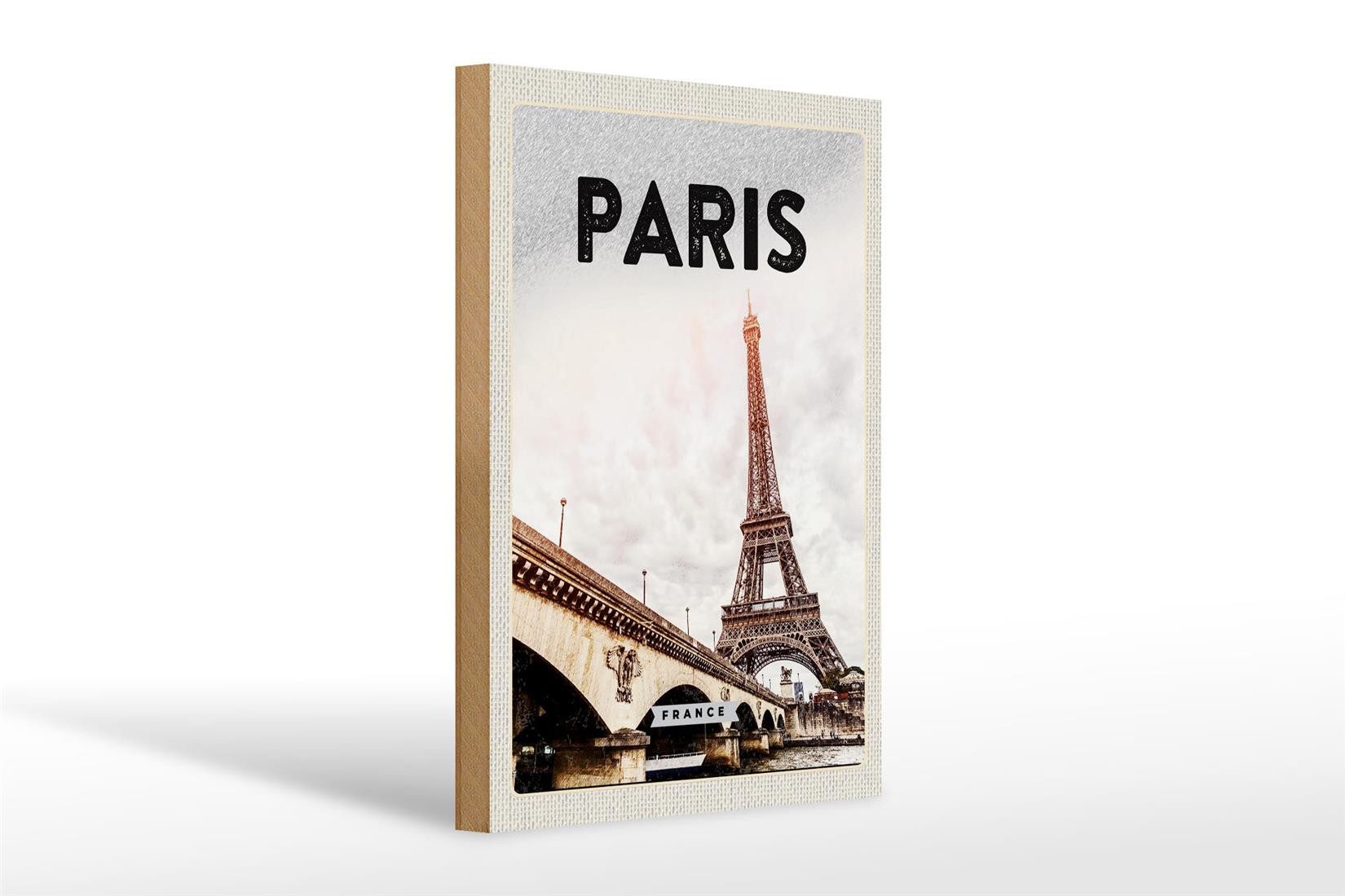 Femer GmbH Holzbild Reise 20x30cm Paris Frankreich Eiffelturm, (1 St), Glatte Holzfaserplatte (MDF), vorn beschichtet