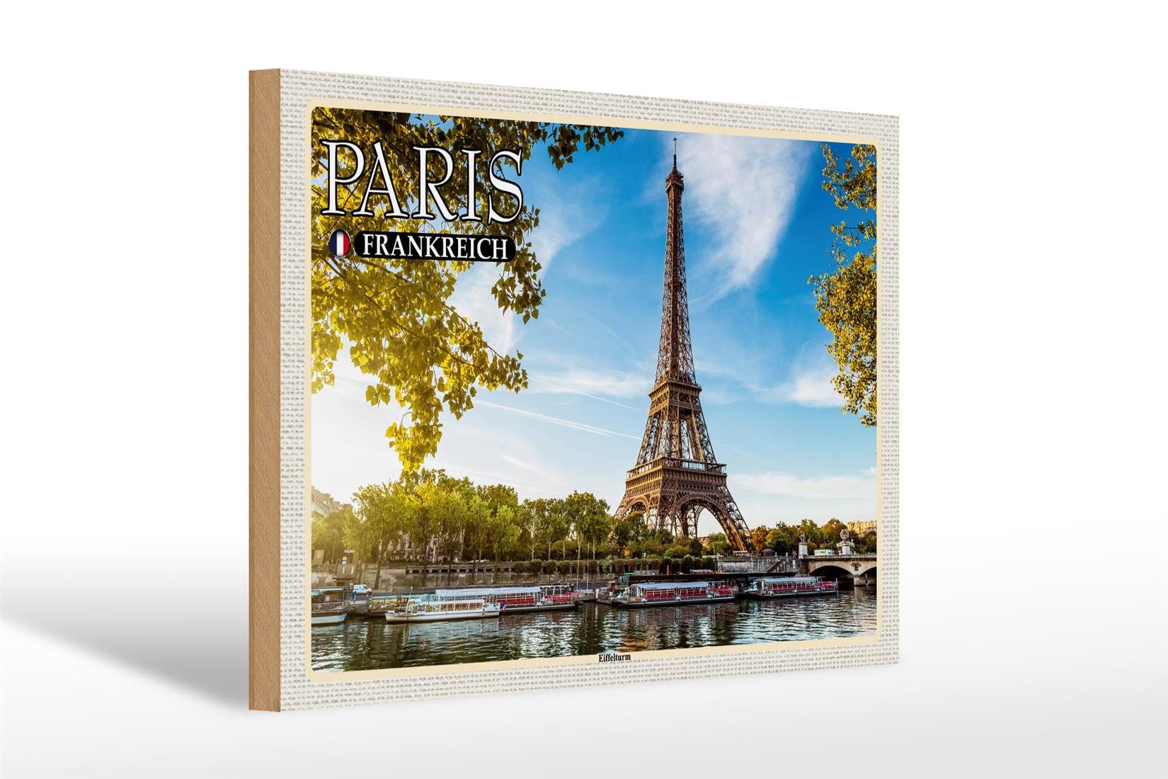 Femer GmbH Holzbild Reise 30x20cm Paris Frankreich Eiffelturm, (1 St), Glatte Holzfaserplatte (MDF), vorn beschichtet