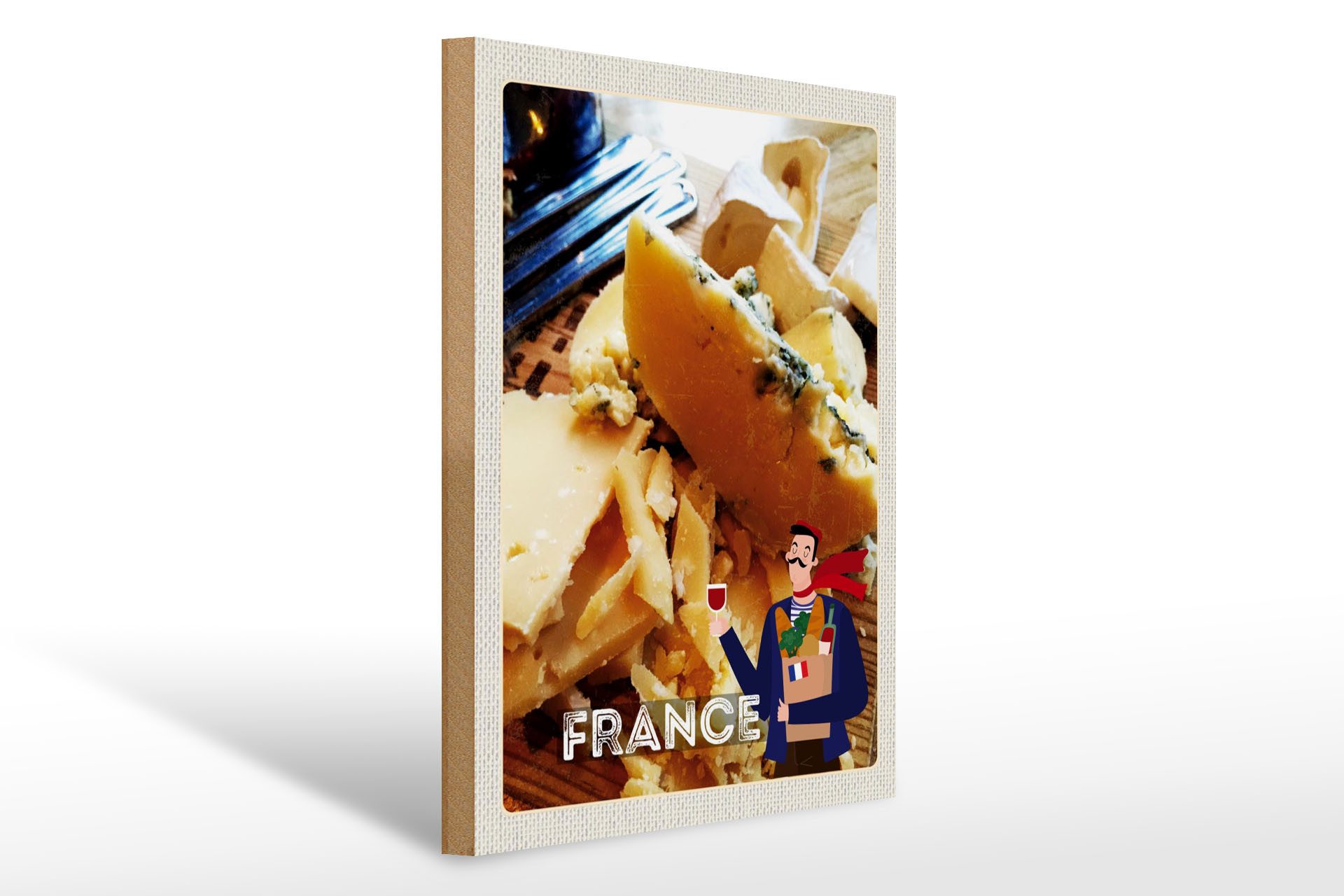 Femer GmbH Holzbild Reise 30x40cm Frankreich Käsesorten Wein Baguette, (1 St), Glatte Holzfaserplatte (MDF), vorn beschichtet