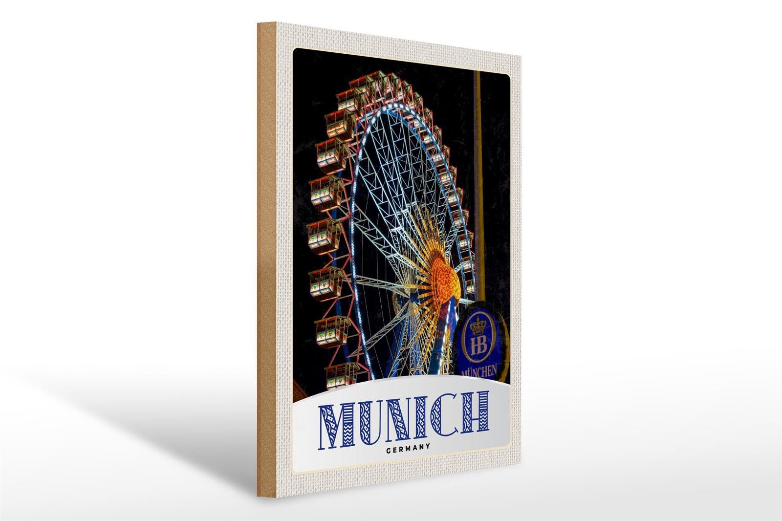Femer GmbH Holzbild Reise 30x40cm München Oktoberfest Riesenrad Kirmes, (1 St), Glatte Holzfaserplatte (MDF), vorn beschichtet