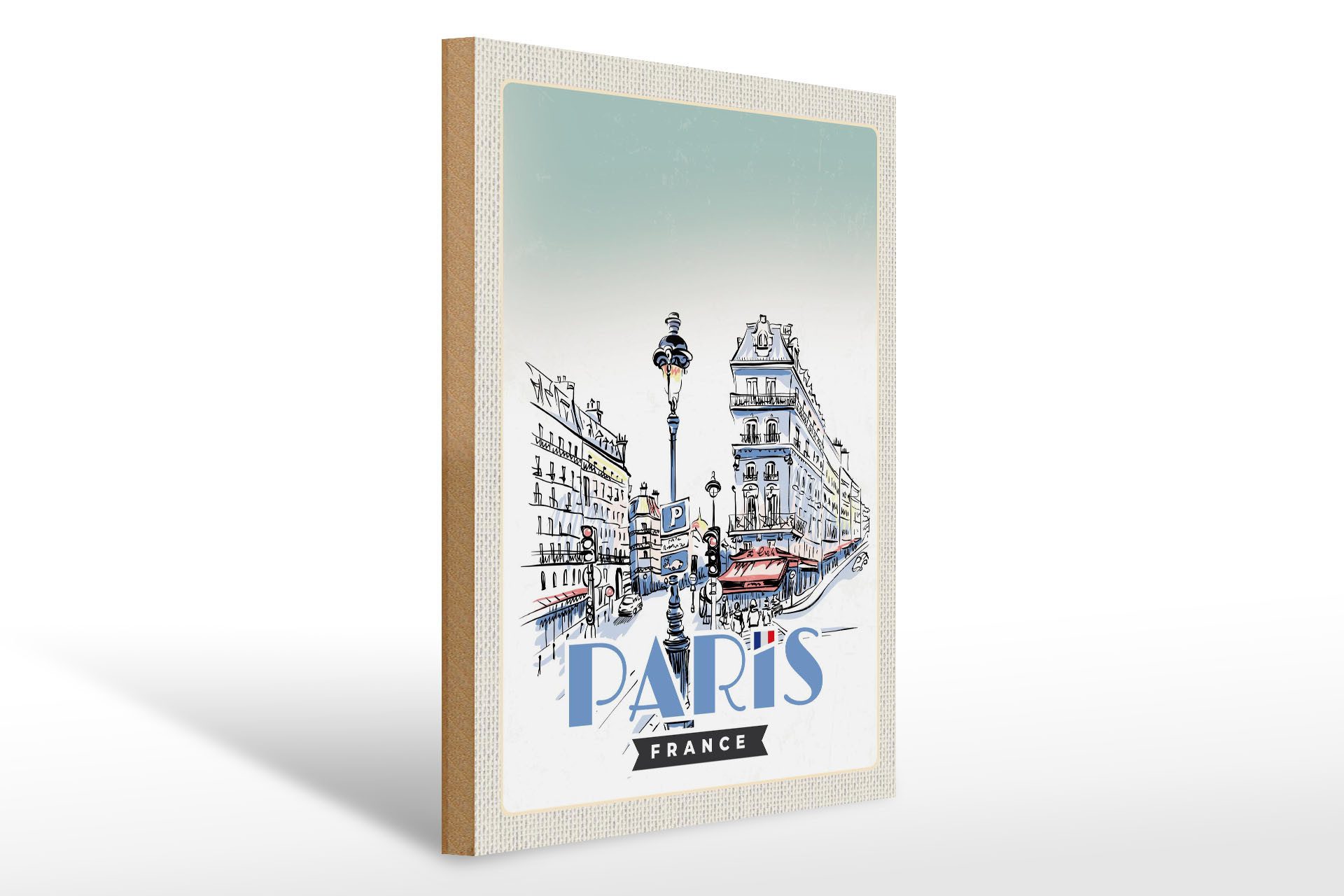 Femer GmbH Holzbild Reise 30x40cm Paris Frankreich Stadt Kunstbild, (1 St), Glatte Holzfaserplatte (MDF), vorn beschichtet