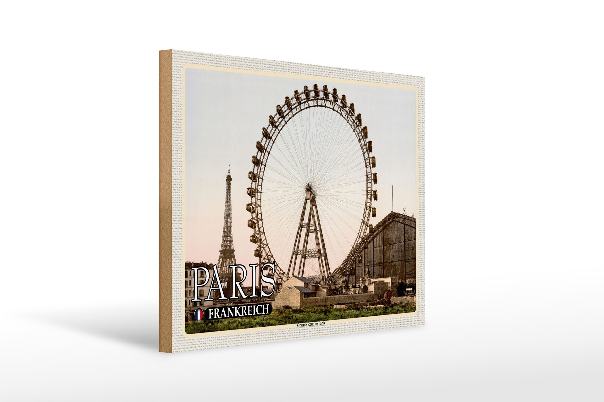 Femer GmbH Holzbild Reise 40x30cm Paris Frankreich Grande Roue Riesenrad, (1 St), Glatte Holzfaserplatte (MDF), vorn beschichtet