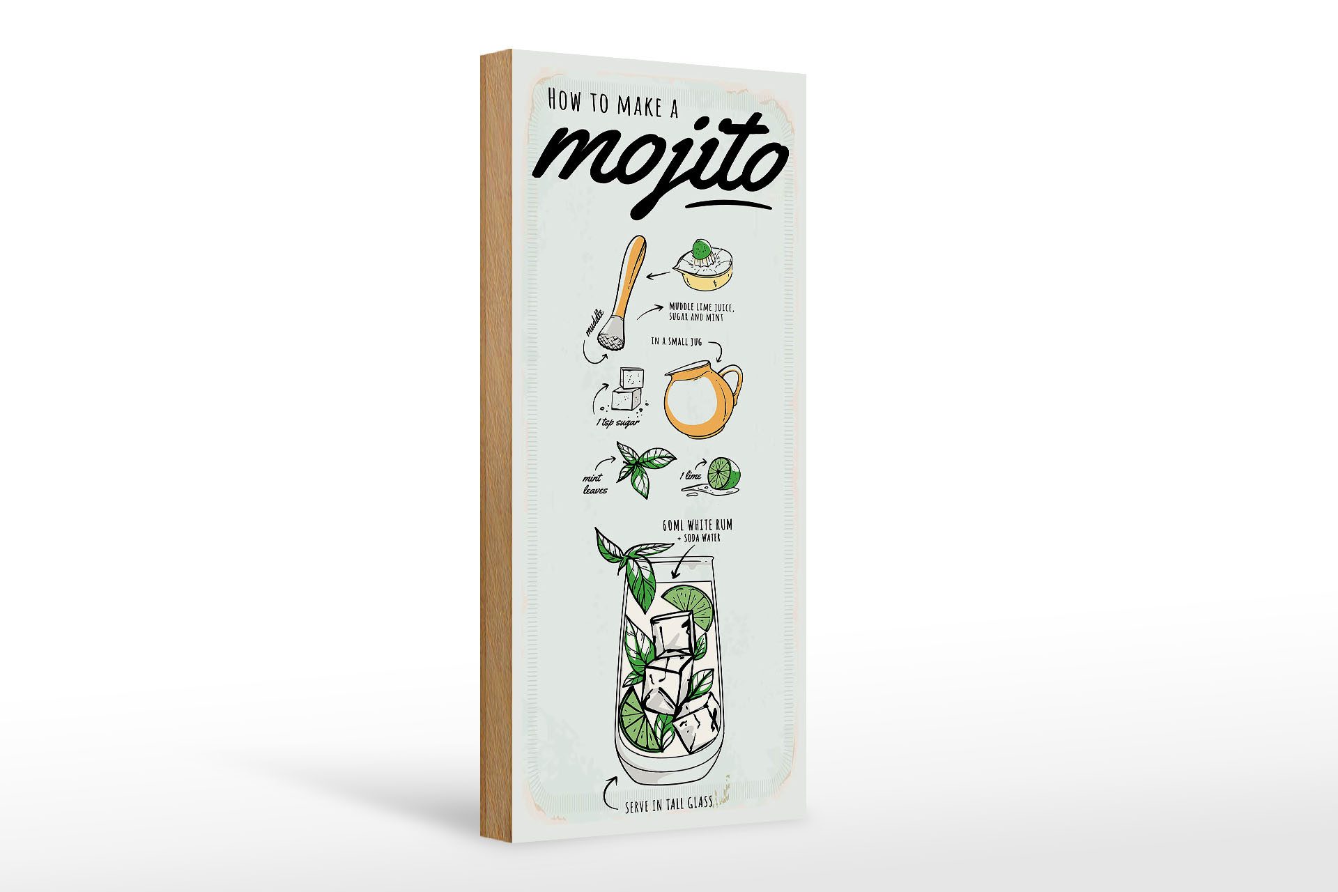 Holzbild Rezept Mojito Cocktail Recipe white rum 10x27cm