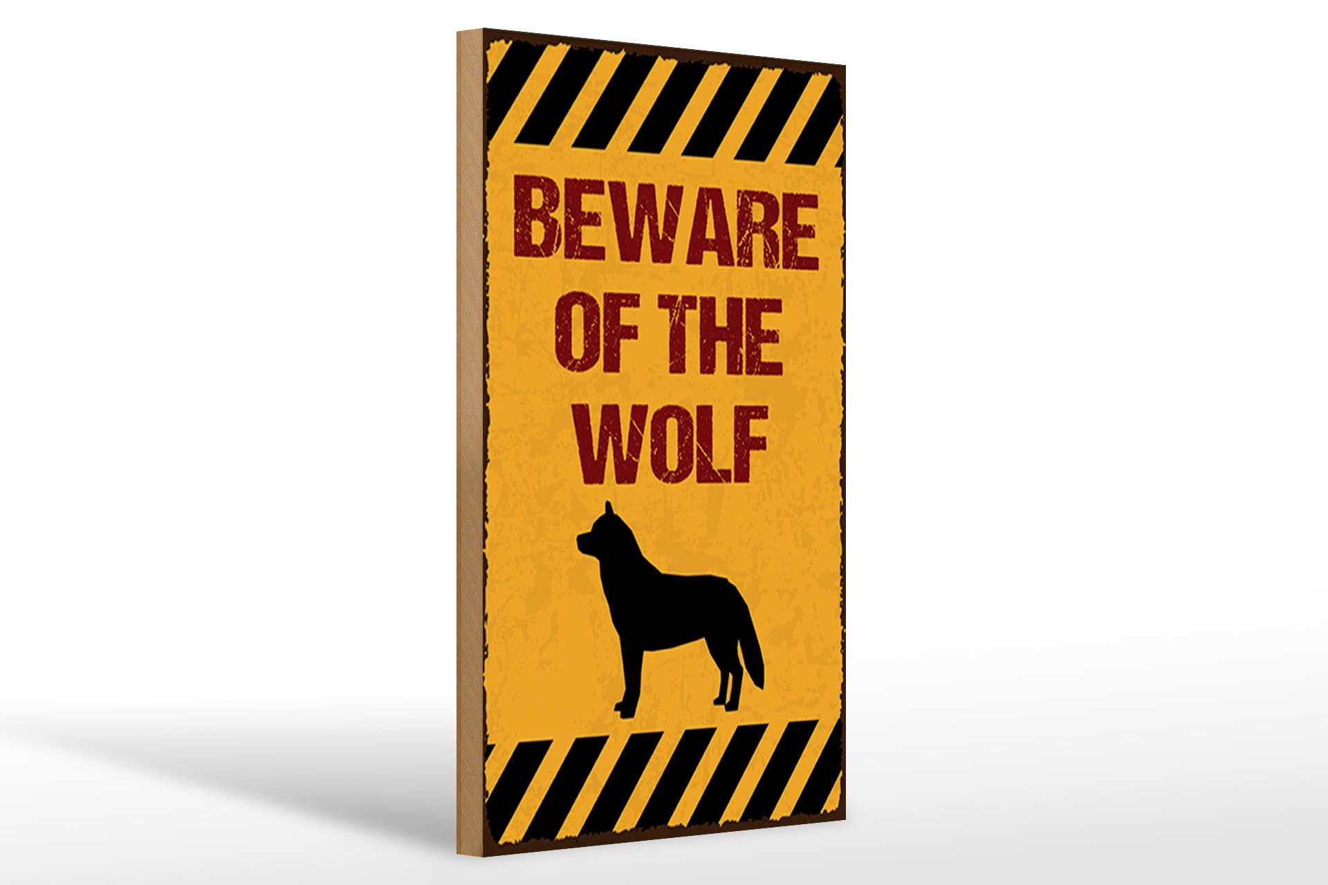 Holzbild Spruch 12x18 cm Be aware Wolf