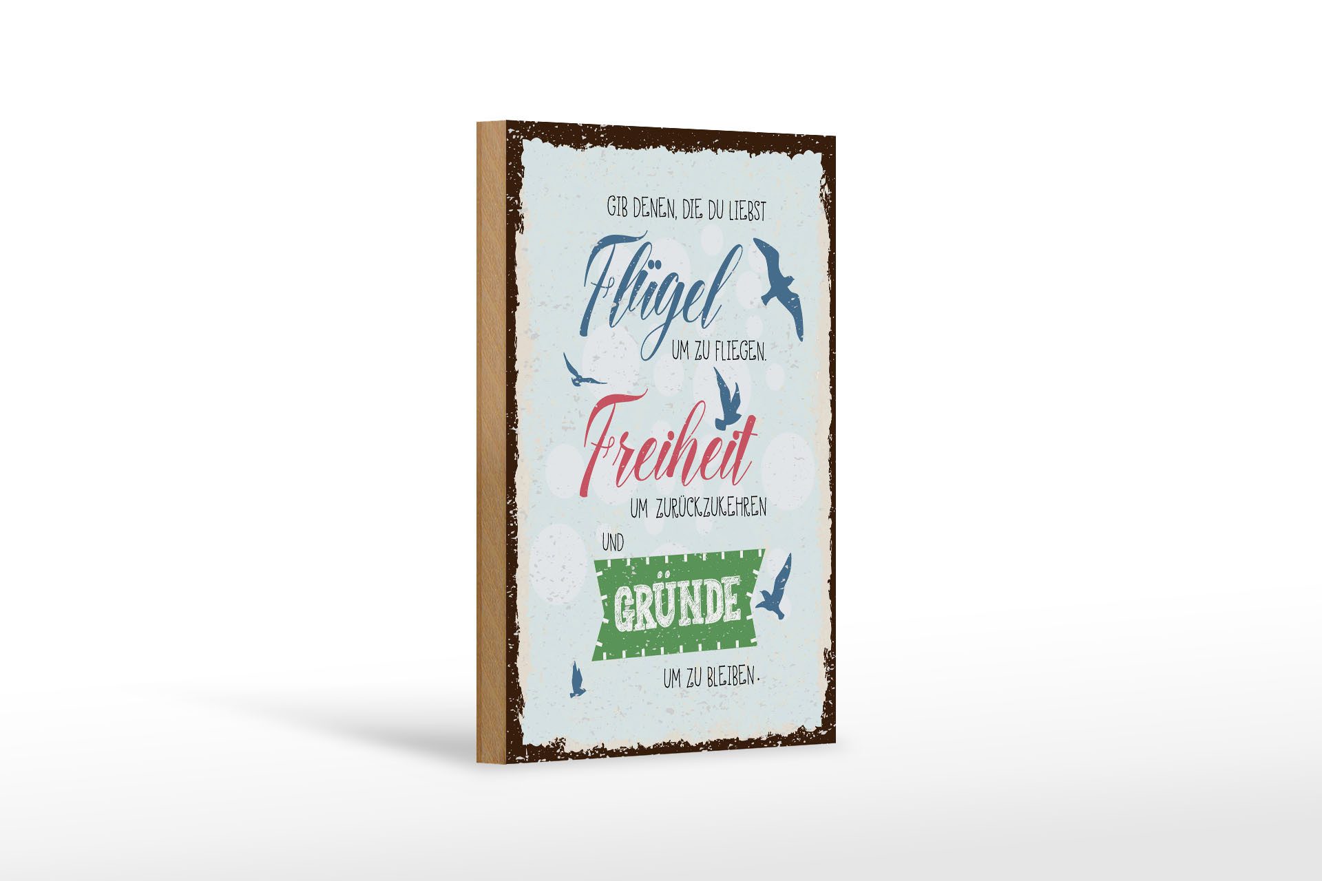 Holzbild Spruch 12x18 cm Flügel zum Fliegen Freiheit um zurückzukehren