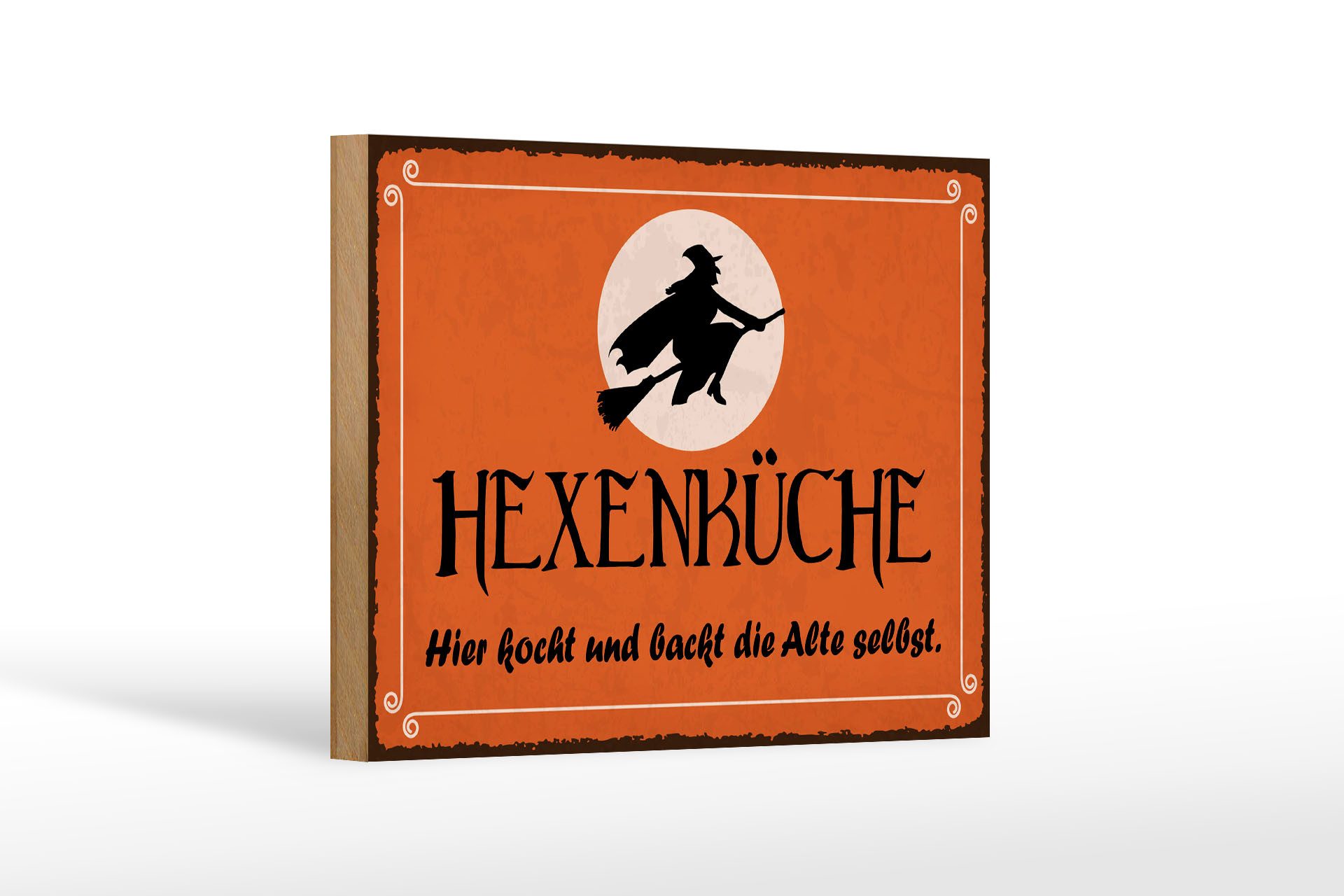 Holzbild Spruch 12x18 cm Hexenküche Hier kocht und backt die Alte selbst