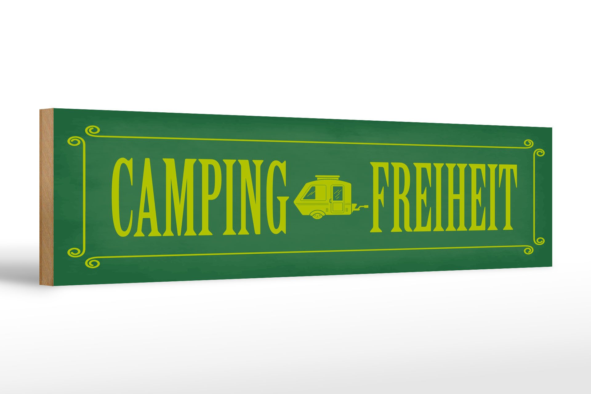 Femer GmbH Holzbild Spruch 46x10 cm Camping Freiheit, (1 St), Glatte Holzfaserplatte (MDF), vorn beschichtet