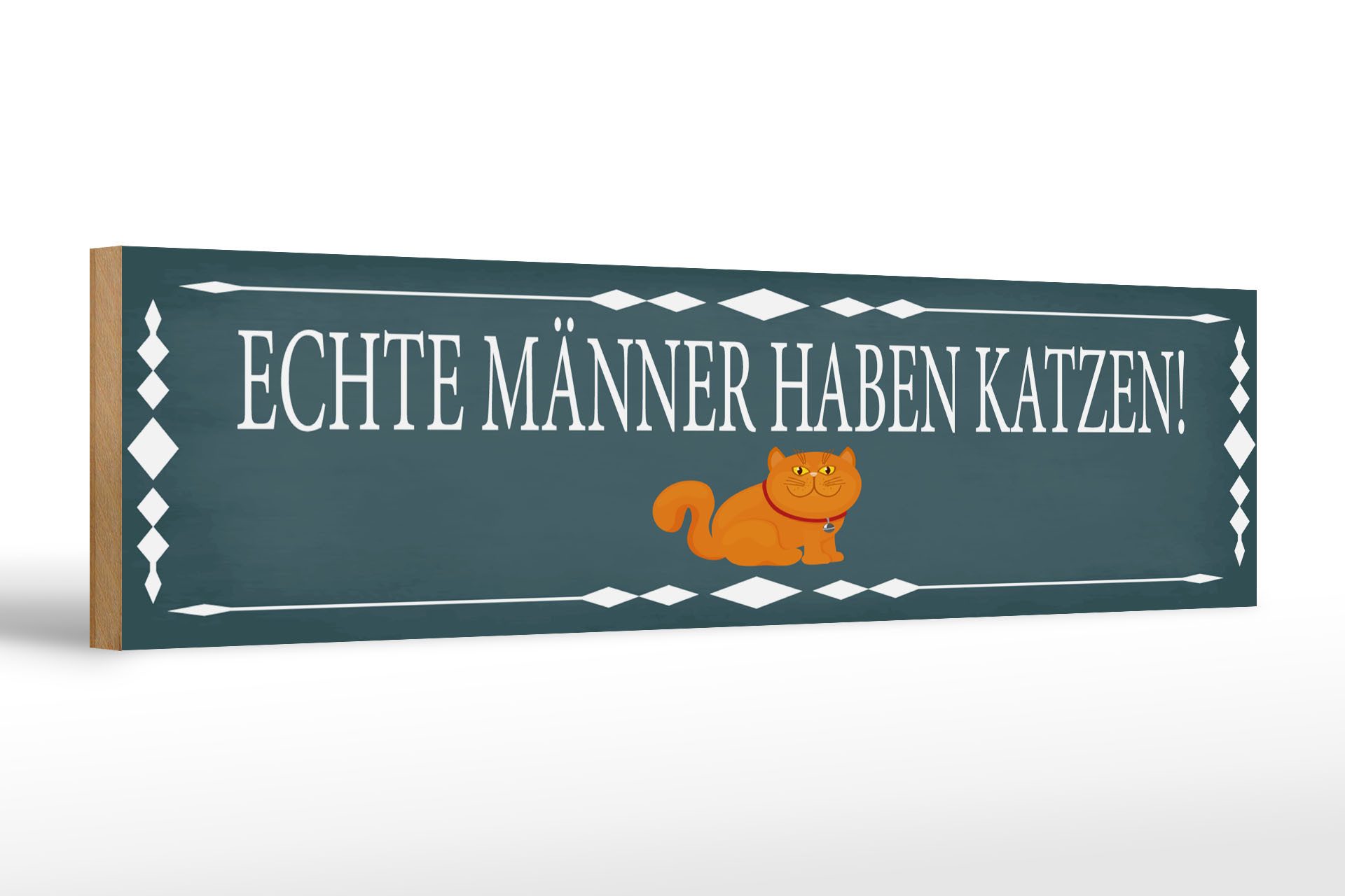 Femer GmbH Holzbild Spruch 46x10 cm Echte Männer Katzen, (1 St), Glatte Holzfaserplatte (MDF), vorn beschichtet