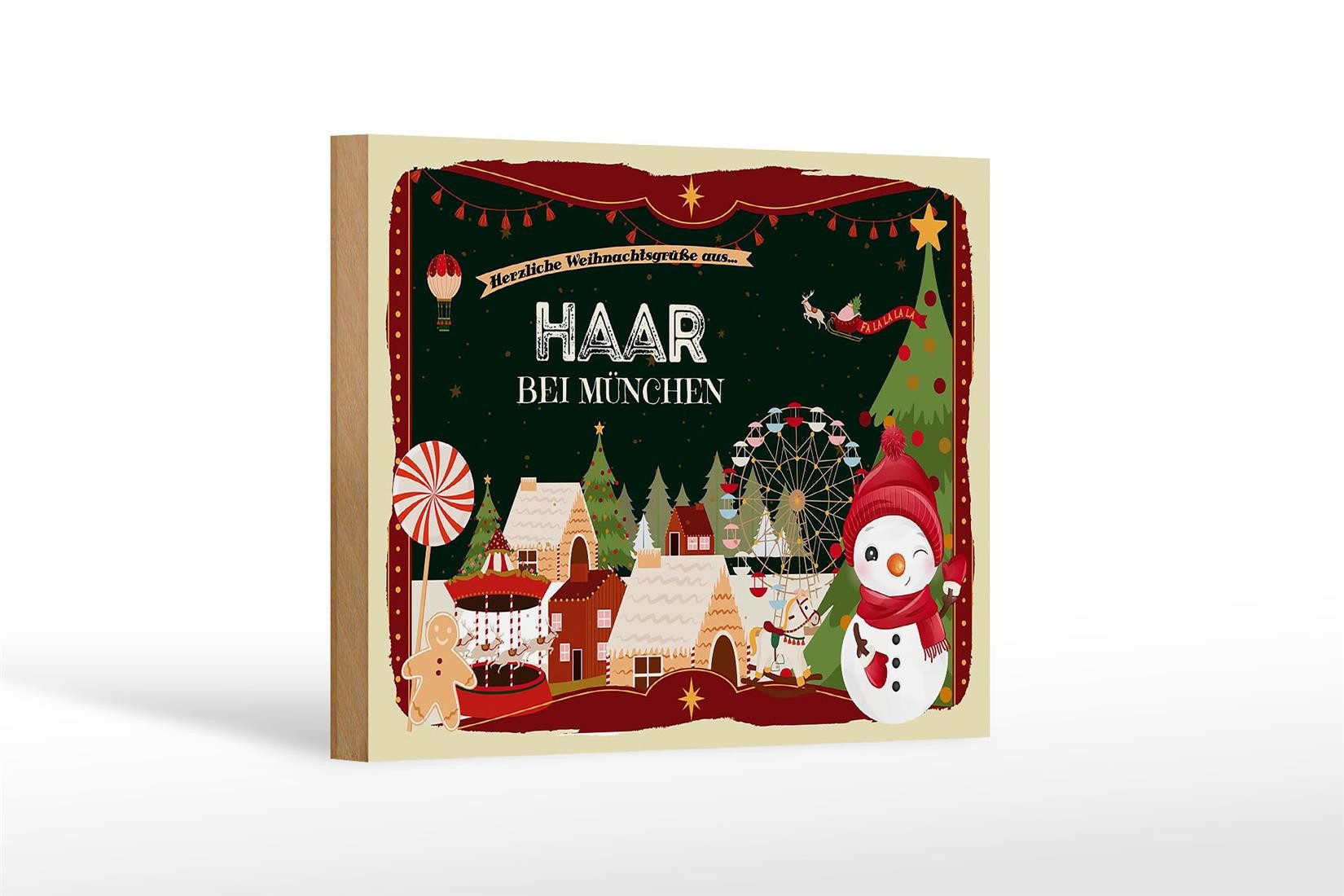 Femer GmbH Holzbild Weihnachten Grüße HAAR BEI MÜNCHEN 18x12 cm, Feste und Feiertage (1 St), Glatte Holzfaserplatte (MDF), vorn beschichtet