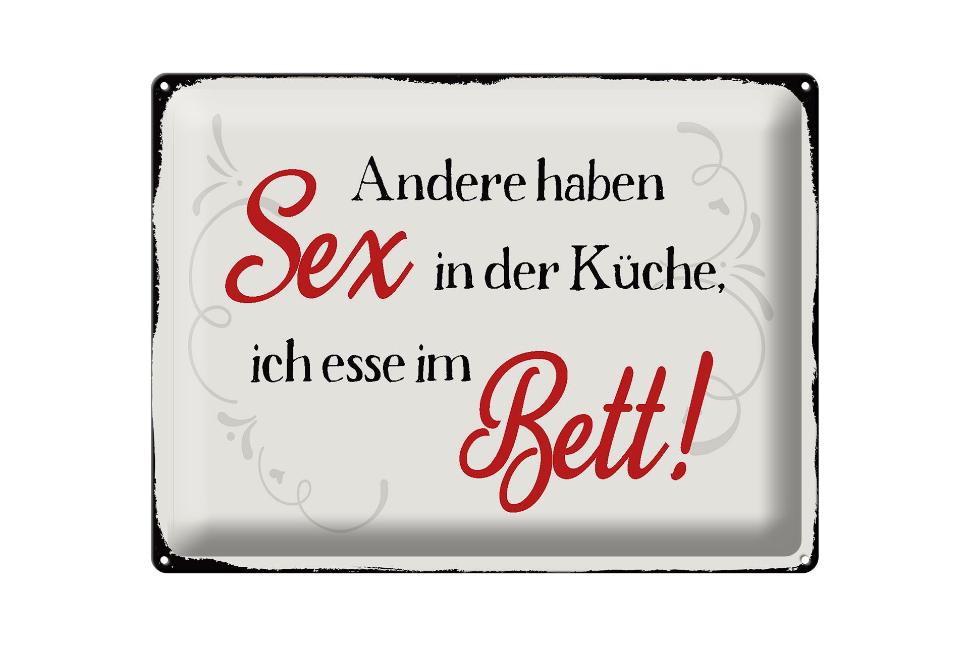 Femer GmbH Metallschild Spruch 40x30cm Sex in der Küche Bett, (1 St), gewölbte Oberfläche, abgerundete Ecken, umgeschlagene Kanten