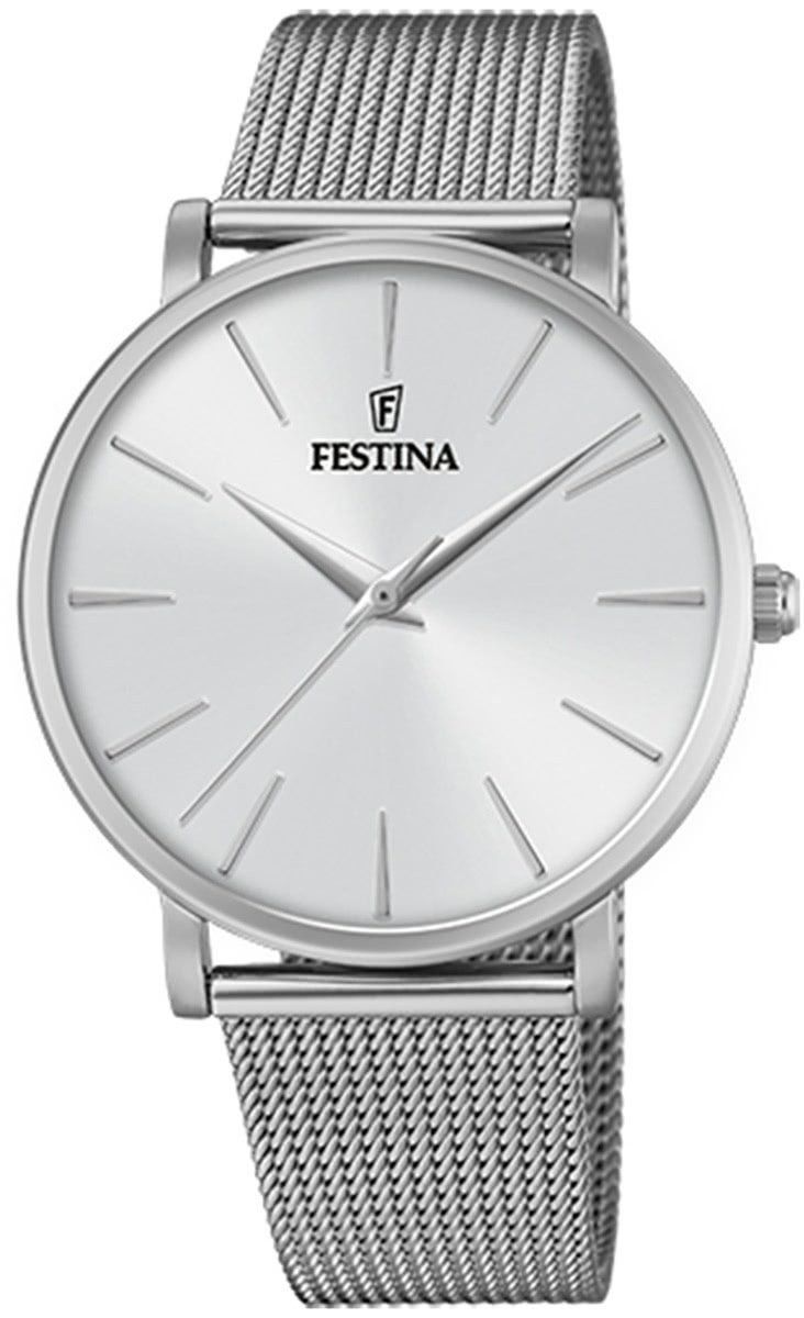 Seit mehr als 100 Jahren sind Uhren weltweit durch den Namen Festina, lat. -Beeil dich-, gekennzeichnet. Die erfolgreiche Uhrenmarke wurde 1902 in der Schweiz gegründet, 1984 von dem Spanier Miguel Rodriguez übernommen und hat seither ihren Hauptsitz in Barcelona. Festina Uhren sind ausgezeichnet durch ihren hohen Qualitätsanspruch und solide Preise. Die namenhafte Firma verwendet ausschließlich hochwertige japanische oder Schweizer Uhrwerke.