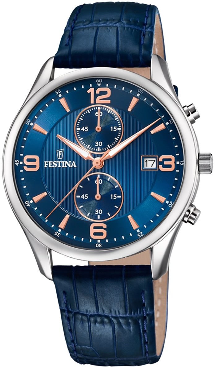 Seit mehr als 100 Jahren sind Uhren weltweit durch den Namen Festina, lat. -Beeil dich-, gekennzeichnet. Die erfolgreiche Uhrenmarke wurde 1902 in der Schweiz gegründet, 1984 von dem Spanier Miguel Rodriguez übernommen und hat seither ihren Hauptsitz in Barcelona. Festina Uhren sind ausgezeichnet durch ihren hohen Qualitätsanspruch und solide Preise. Die namenhafte Firma verwendet ausschließlich hochwertige japanische oder Schweizer Uhrwerke.