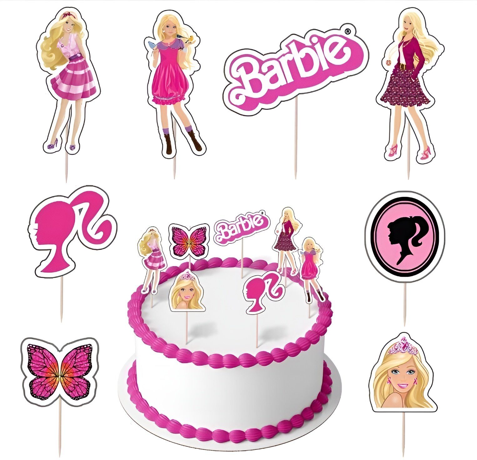 Exklusiver BARBIE-Topper-Set für perfekte Geburtstagsdekoration! 10 farbenfrohe Lizenzfiguren aus hochwertigem Papier. Ideale Ergänzung für Torten und Cupcakes. Schaffe unvergessliche Erinnerungen. Jetzt kaufen und Kinderparty aufwerten! Das Set enthält: 10 Stück ausgeschnittene Figuren, 10 Stück Klebepunkte, 10 Stück Zahnstocher, Der Topper besteht aus speziellem Papier, das selbst zusammengeklebt werden muss Размер der Kegel: ca. 9cm