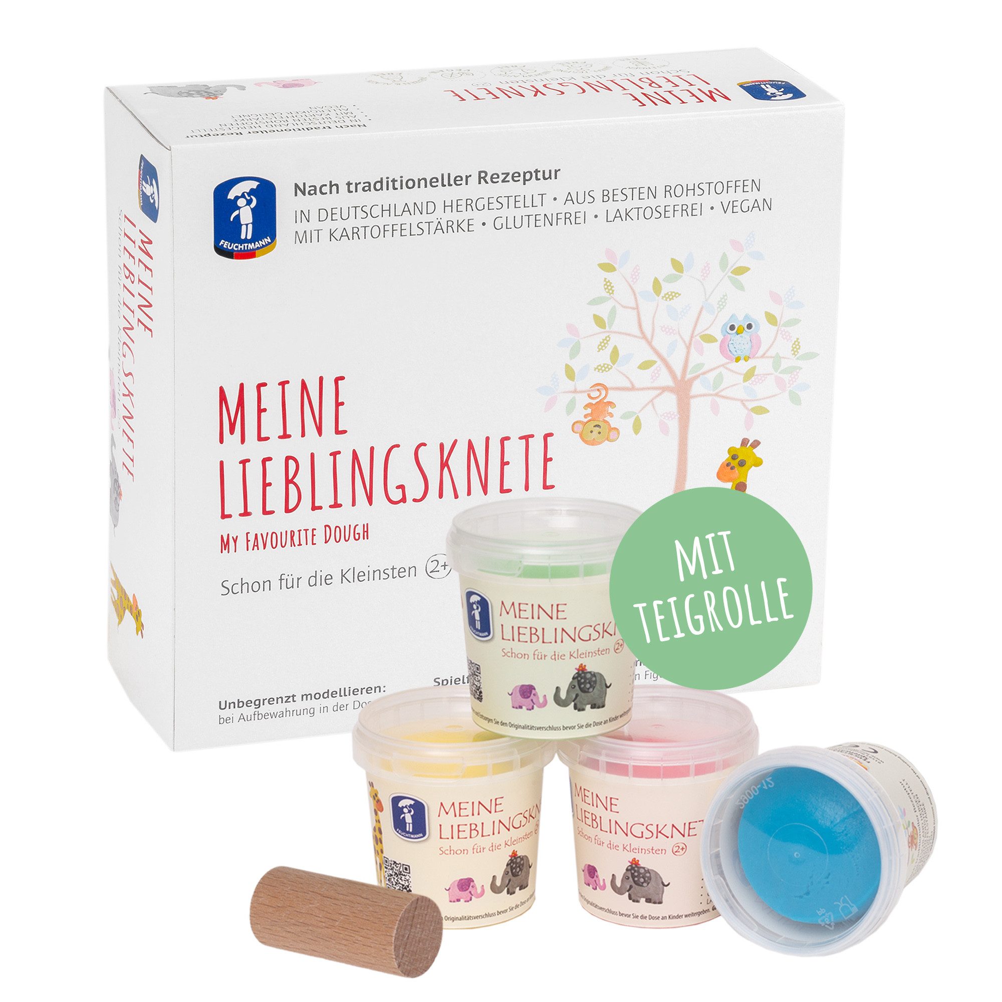 MEINE LIEBLINGSKNETE: 4 x 150g Premium-Knete! Sehr geschmeidige Spielknete in fröhlich-bunten Farben nach traditioneller Feuchtmann-Rezeptur. Nur aus den besten Rohstoffen in