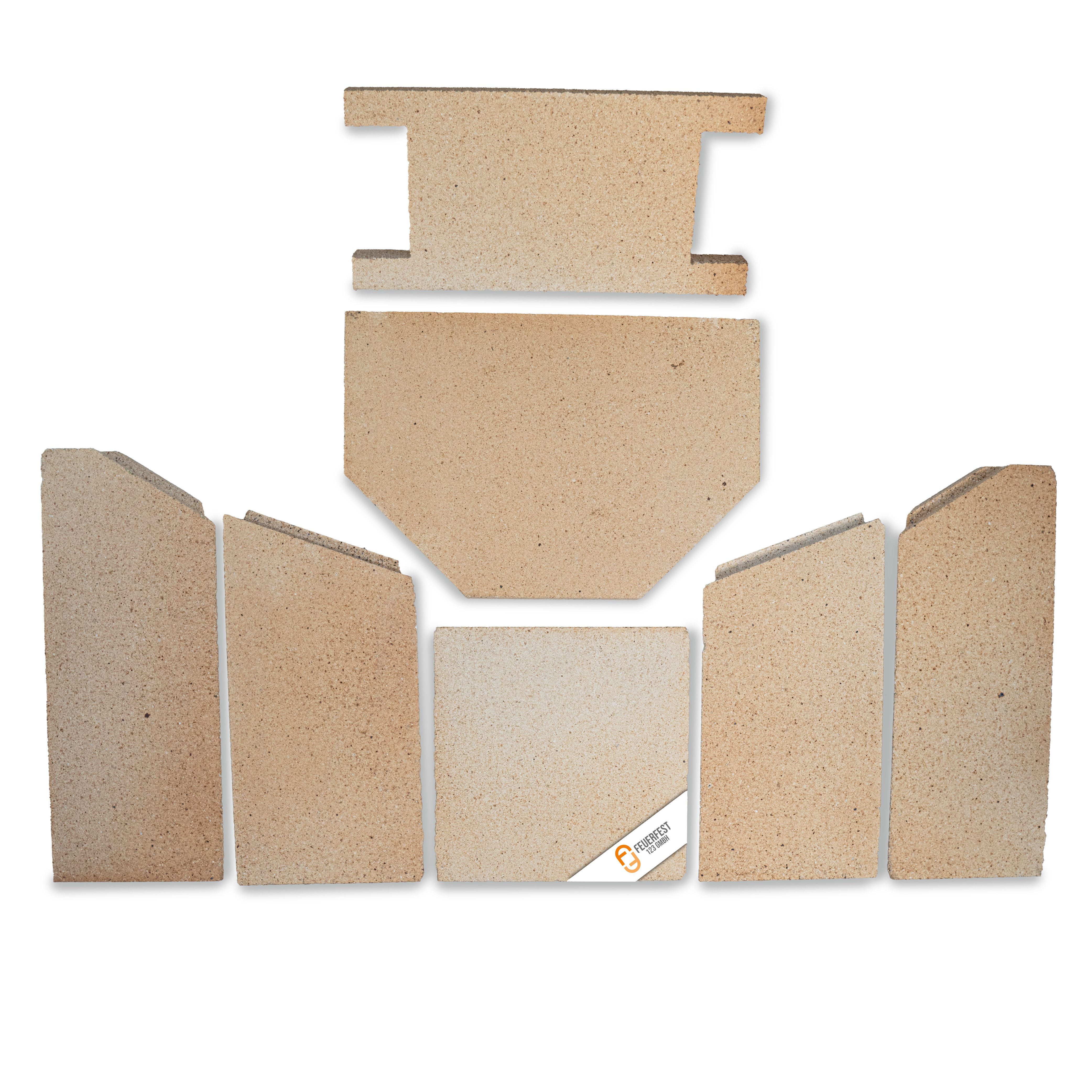 Komplette Feuerraumauskleidung aus hochwertiger Schamotte oder Vermiculite für Ihren Kamin / Kaminofen. Die Feuerraumauskleidung bzw. die Einzelteile werden von der Feuerfest 123 GmbH produziert. Je nach Modell benötigen Sie ein anderes Set. In den Produktbildern finden Sie die Feuerraumauskleidungen passend für die verschiedenen Hark* Modelle. * Hierbei handelt es sich nicht um Original-Produkte der Firma HARK GmbH & Co. KG, lediglich sind die Kaminofen Ersatzteile genau passend für die in der Beschreibung genannten Fabrikate. Die Feuerraumauskleidungen von Feuerfest 123 GmbH können alternativ für die genannten Kamine und Öfen genutzt werden.