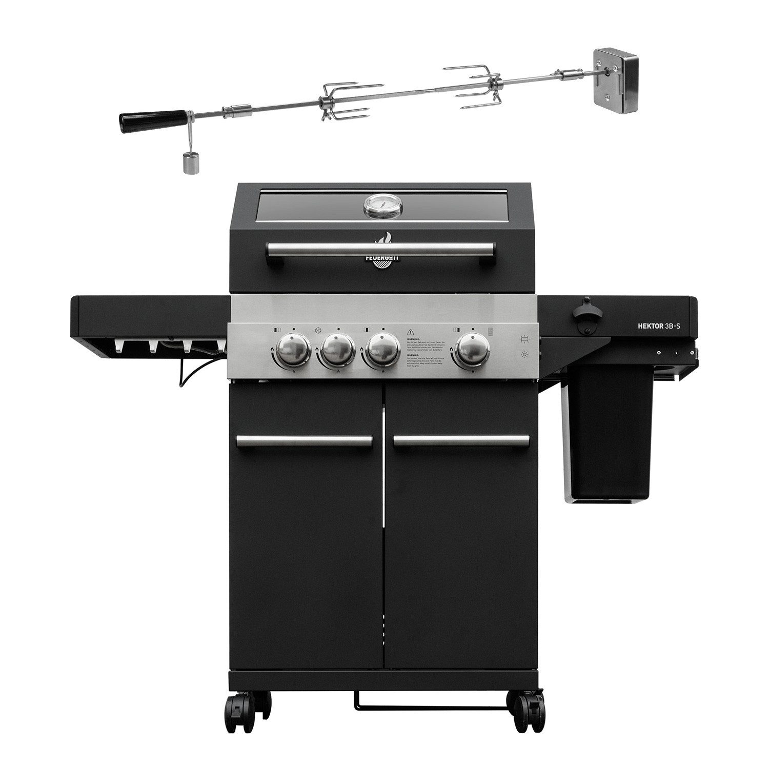 Im praktischen Set erhältst du neben der Gas-Grillstation Hektor 3B-S inkl. Abdeckhaube auch einen passenden Drehspieß.