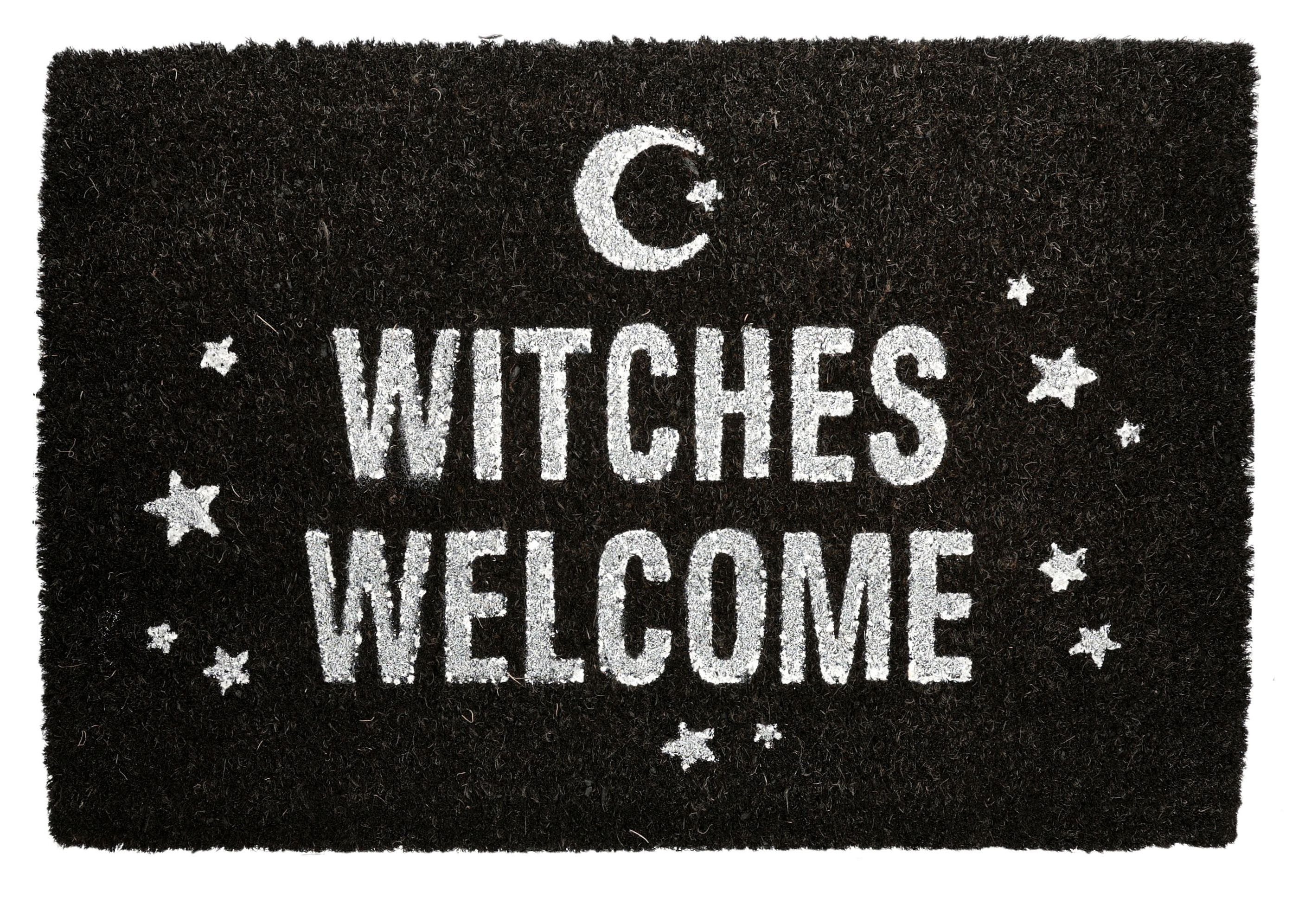Ein mystischer Empfang für echte Hexen und alle, die es werden wollen – die schwarze Fußmatte mit der Aufschrift "Witches Welcome" bringt ein magisches Flair vor jede Tür. Auf 60 x 40 cm zeigt sich ein okkultes Design mit Sternen und Mondsymbol, das sofort Aufmerksamkeit erregt. Die Matte ist 1,5 cm hoch und besteht aus robustem Kokosmaterial – ideal, um Schmutz effektiv aufzunehmen. Die rutschfeste Unterseite aus PVC sorgt dabei für sicheren Halt auf jedem Untergrund.