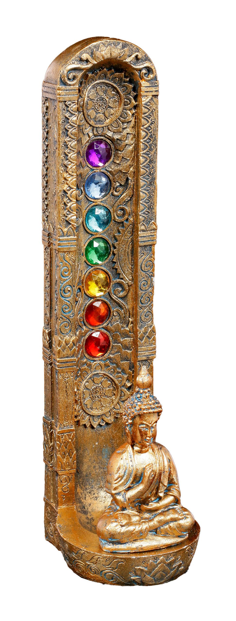 Dieser Räucherstäbchenhalter ist wirklich eine wunderschöne Augenweide. Die wunderschönen Verzierungen und die schönen eingearbeiteten Chakrasteine sowie die sitzende Buddha Figur. Einfach nur schön. Für die Räucherstäbchen lege ich was unter weil die Asche leider an der Seite runterfällt, bei Räucherkegeln bleibt alles Sauber. Kann ich trotzdem mit reinem gewissen weiterempfehlen. Am besten den Stäbchenhalter auf einen kleinen passenden Teller stellen dann bleibt auch alles schön sauber. Werde ich auch in die Tat umsetzen. Viel Spaß