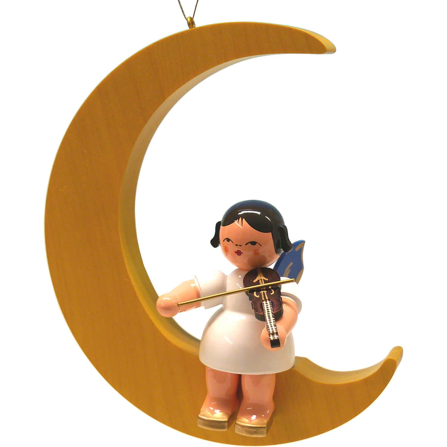 Figurenland Uhlig GmbH Dekohänger Engel mit Violine - Blaue Flügel - sitzend im Mond gelb (16,5cm) von K