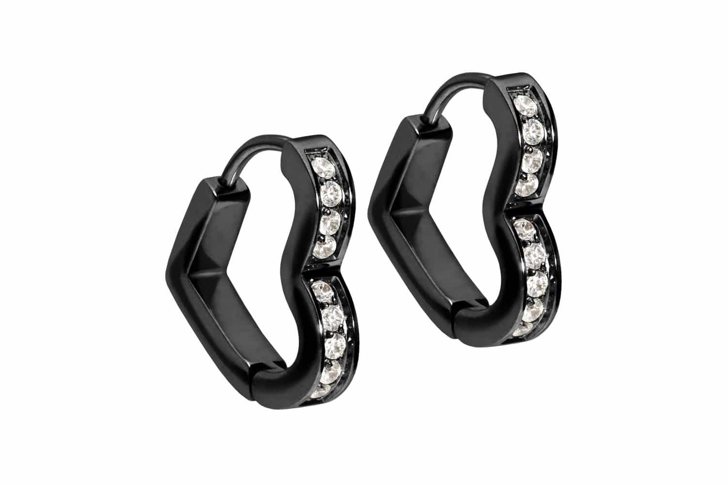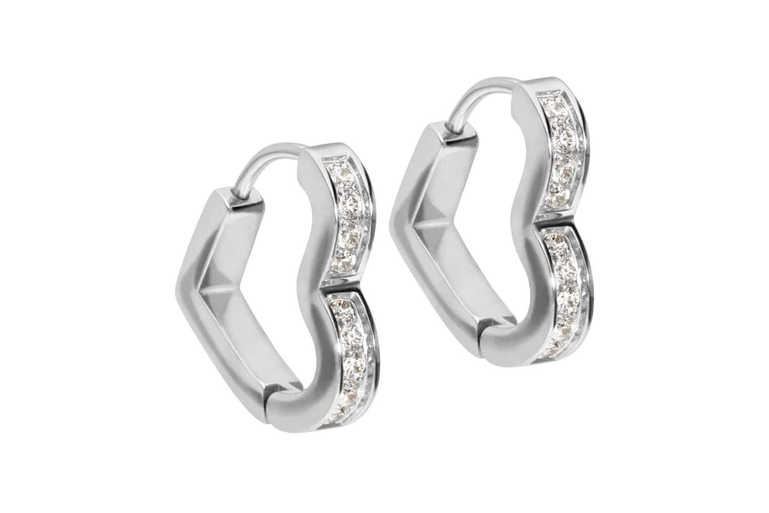 Chirurgenstahl 316L - Ohrclicker Creolen Herz + eingefasste Kristalle