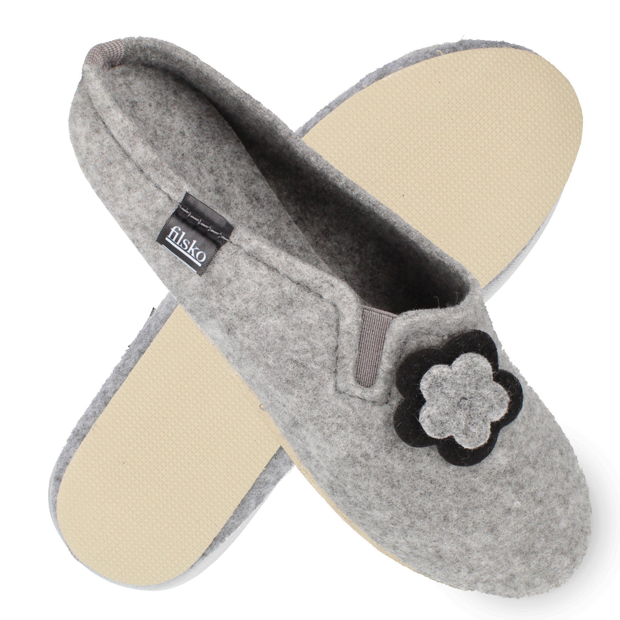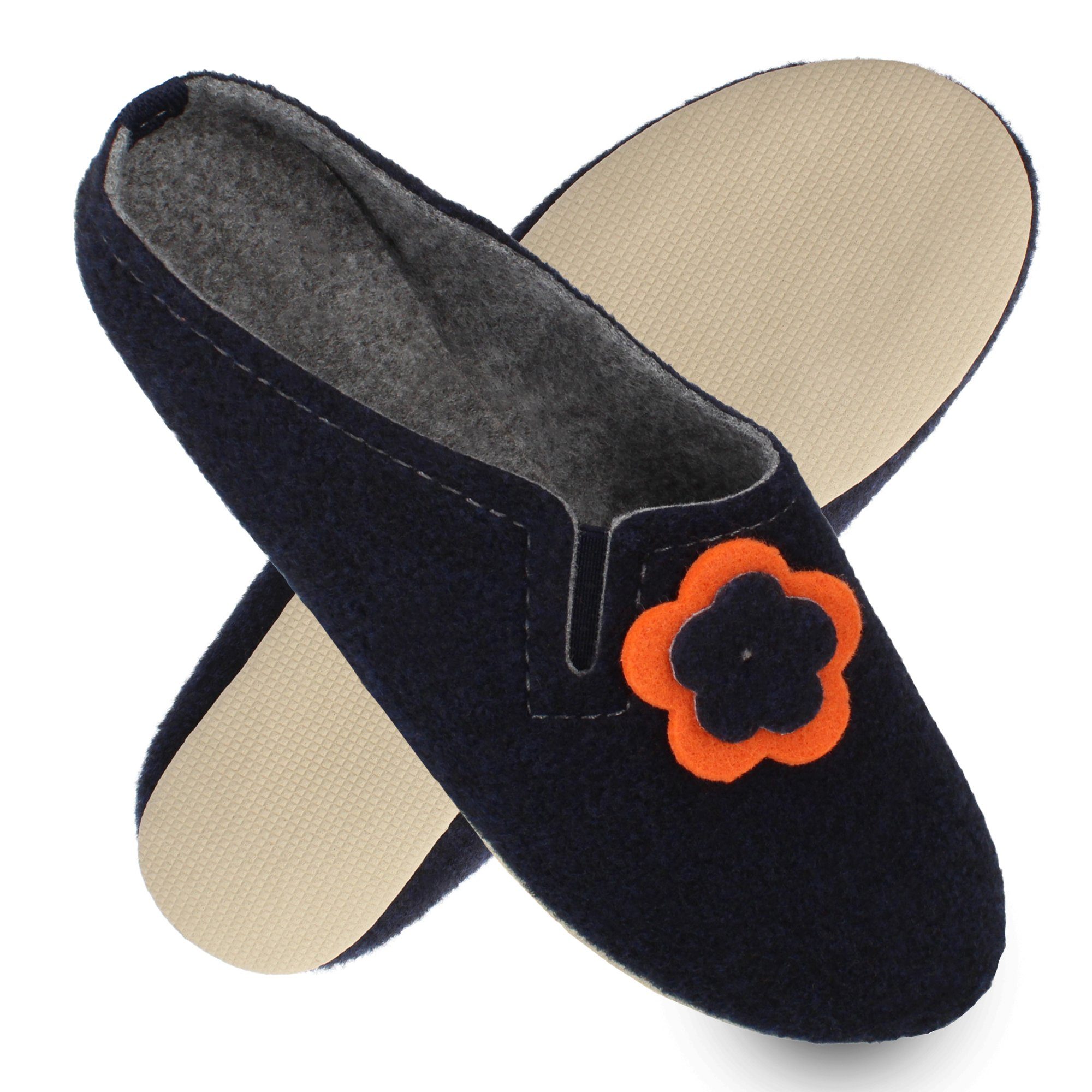 Wer braucht ihn nicht ― den eleganten Hausschuh aus Filz. Entspannt und modisch trägt Sie dieser Hausschuh mit seiner warmen Sohle durch den Alltag. Der weiche Filz passt sich dem Fuß an ohne an Halt zu verlieren und verleiht Ihren Füßen ein besonderes Tragegefühl. Das Laufgefühl ist angenehm und leicht.