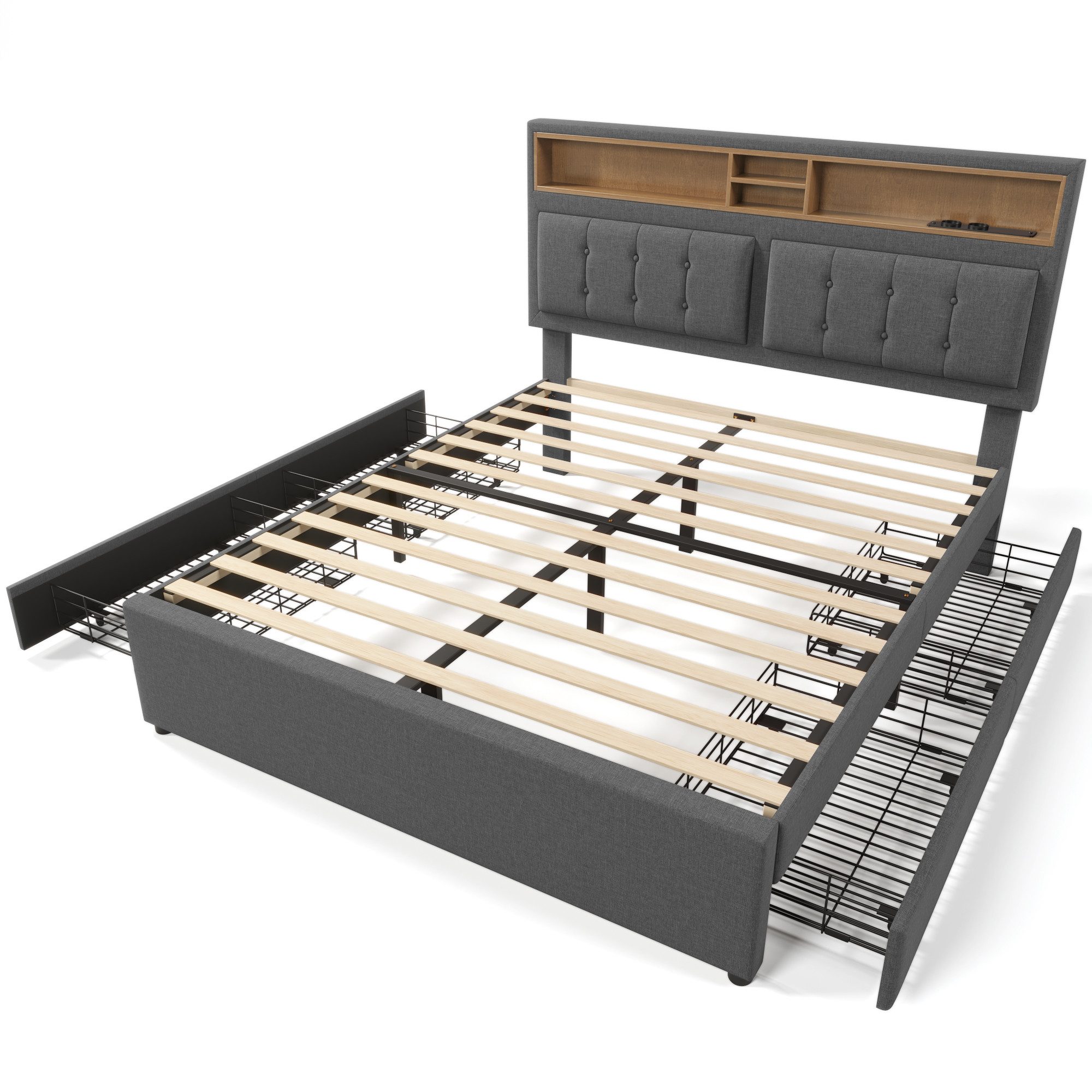 Produktname:Doppelbett mit 4 Schubladen & USB-C-Buchse, 140x200cm Stoffbett, höhenverstellbares Kopfteil, Holzlattenrost (mit Matratze)