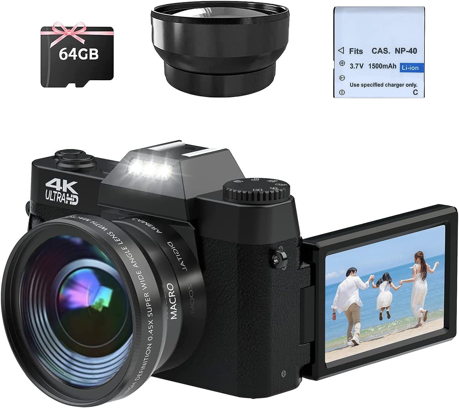 Ausgezeichnete Garantie: Das Paket enthält die Digitalkamera, USB-Kabel, Weitwinkel- und Makroobjektiv, 64GB Micro-SD-Karte, Akku, Handbuch. Wenn Sie Fragen zum Produkt haben, können Sie sich gerne an unseren Kundendienst wenden.