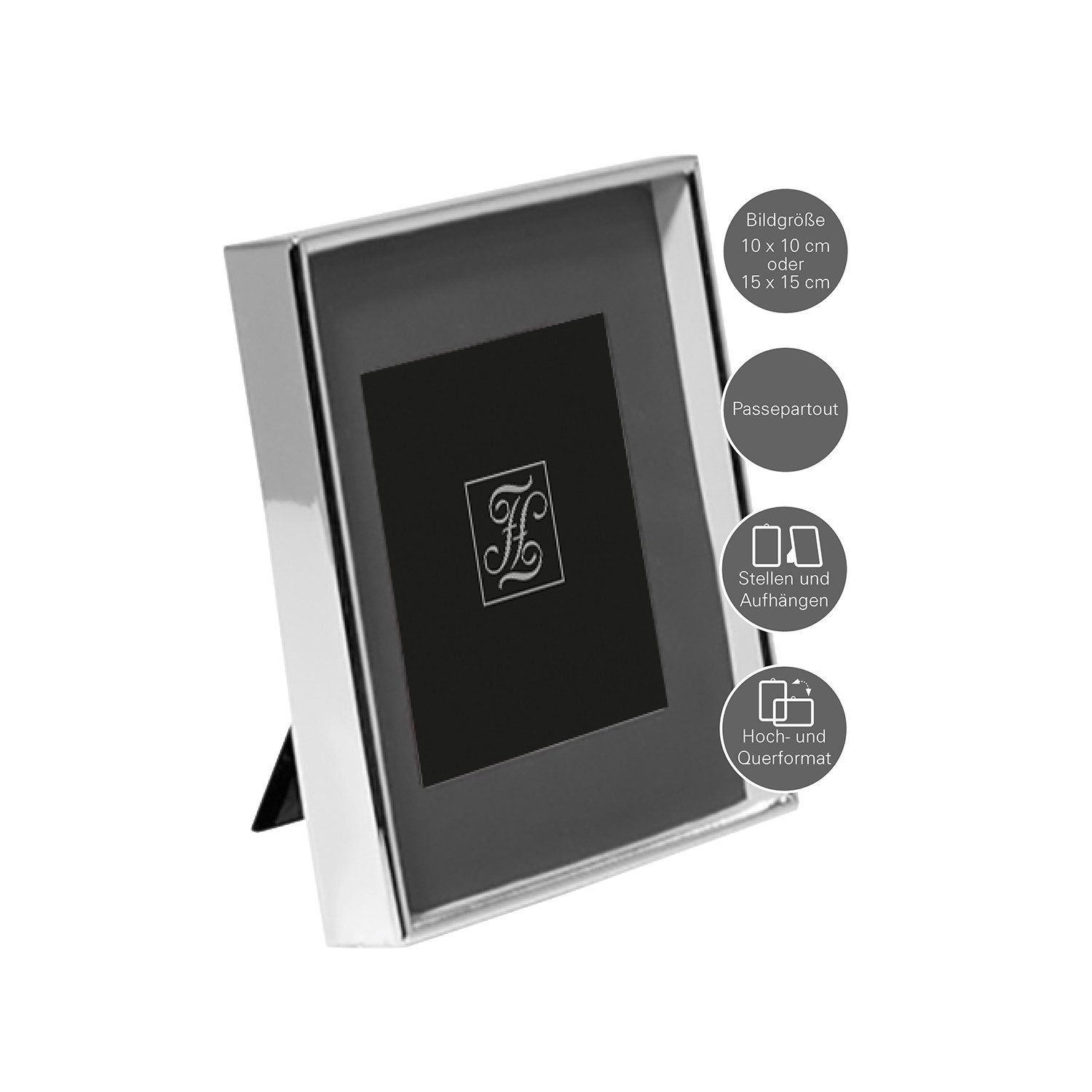 Der FINK Bilderrahmen KIM in der Размер 10x10 cm ist die perfekte Tischdeko, um Fotos zur Erinnerung stilvoll zu präsentieren. Gefertigt aus hochwertigem Glas und versilbertem Stahl, besticht er durch seine elegante graue und silberne Farbgebung. Der Bilderrahmen ist mit einem Anlaufschutz ausgestattet und kann sowohl vertikal als auch horizontal aufgehängt oder stehend verwendet werden, was ihn zu einer vielseitigen Dekoration für schöne Momente macht. Ein graues Passepartout rundet das edle Design ab. Der Klemmbilderhaken sorgt dafür, dass Ihre Bilder sicher an Ort und Stelle bleiben. Dieser Rahmen ist nicht nur eine wunderbare Möglichkeit, Ihre Lieblingsfotos zu präsentieren, sondern auch eine hervorragende Geschenkidee für Freunde und Familie. Bitte beachten Sie, dass keine scheuernden, säurehaltigen Reinigungsmittel wie Glasreiniger verwendet werden sollten; eine weiche Bürste oder ein Tuch sind ideal für die Pflege. Mit einer Höhe von 2,5 cm und einer Breite und Tiefe von jeweils 15,5 cm passt der Rahmen perfekt auf jeden Tisch und setzt Ihre Erinnerungen gekonnt in Szene.