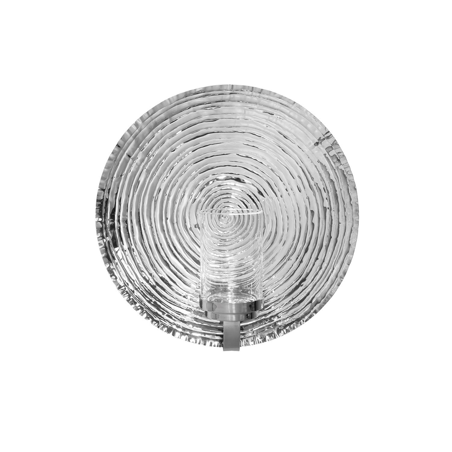 Der FINK Wandleuchter AZORA aus gehämmertem Edelstahl und Glas ist ideal für stilvolle Deko im Wohnzimmer und bietet Platz für Stumpenkerzen.