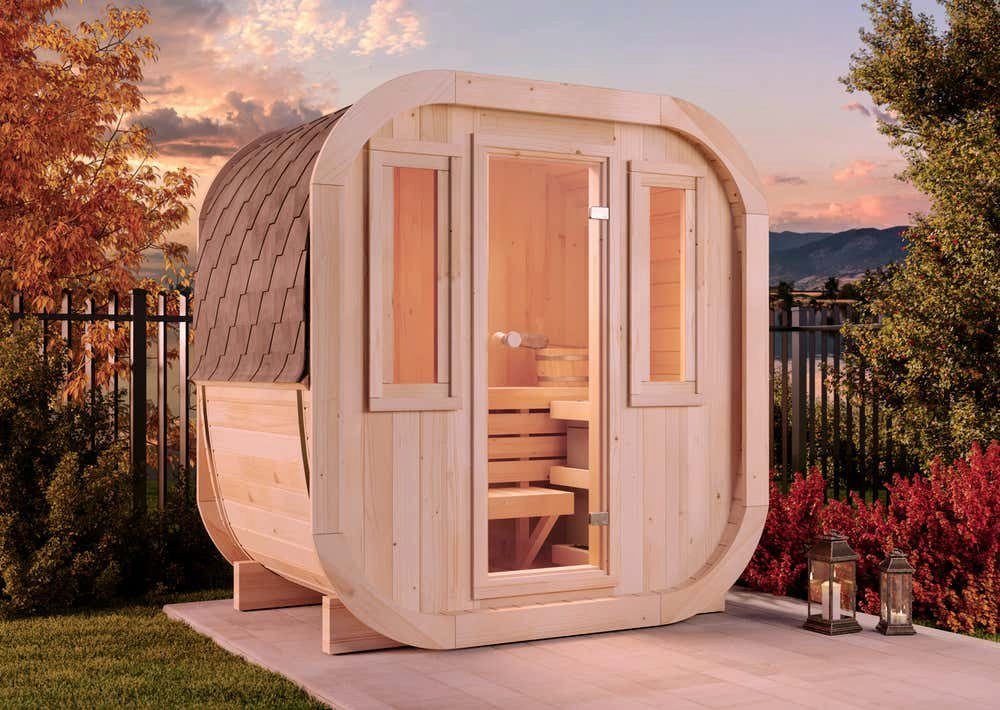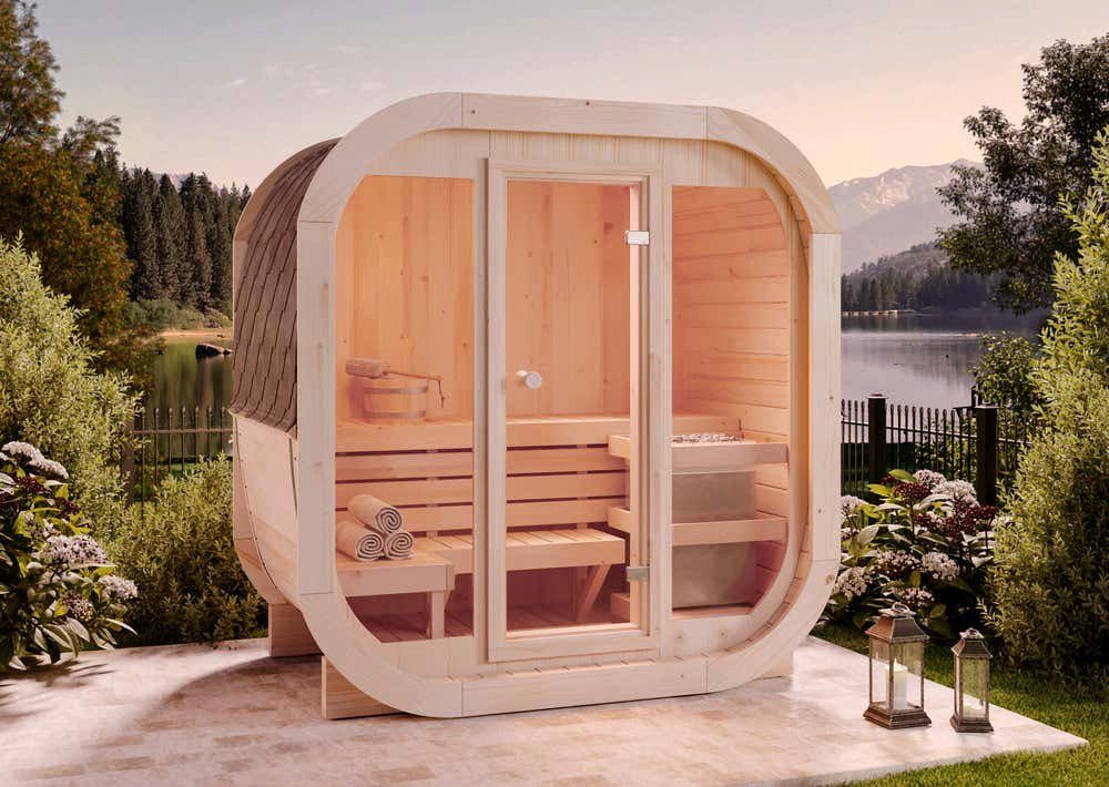 Unsere Fasssauna ScandiCube Mini vereint die beliebten Saunamaße mit einem kubischeren Design. Auf ca. 2,7 m² Grundfläche und mit einer Tiefe von 130 cm passt das Saunafass in jeden Garten und ermöglicht damit gemütliches Saunieren zu zweit.