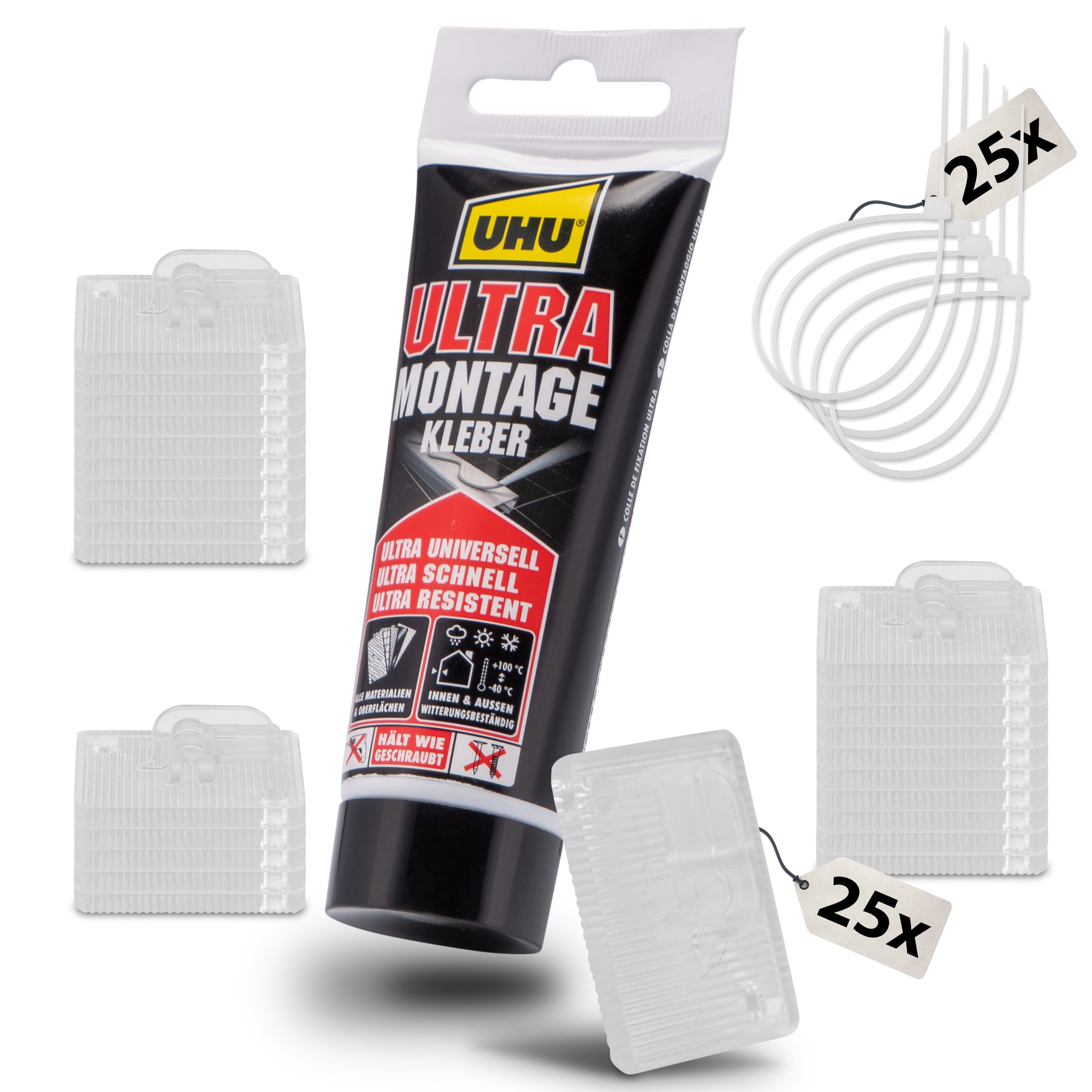Katzennetz, (Katzennetz Befestigung, 25-tlg., Klebehaken und UHU Ultra Marken-Montagekleber und Kabelbinder), Befestigung Katzennetz für Balkon ohne bohren