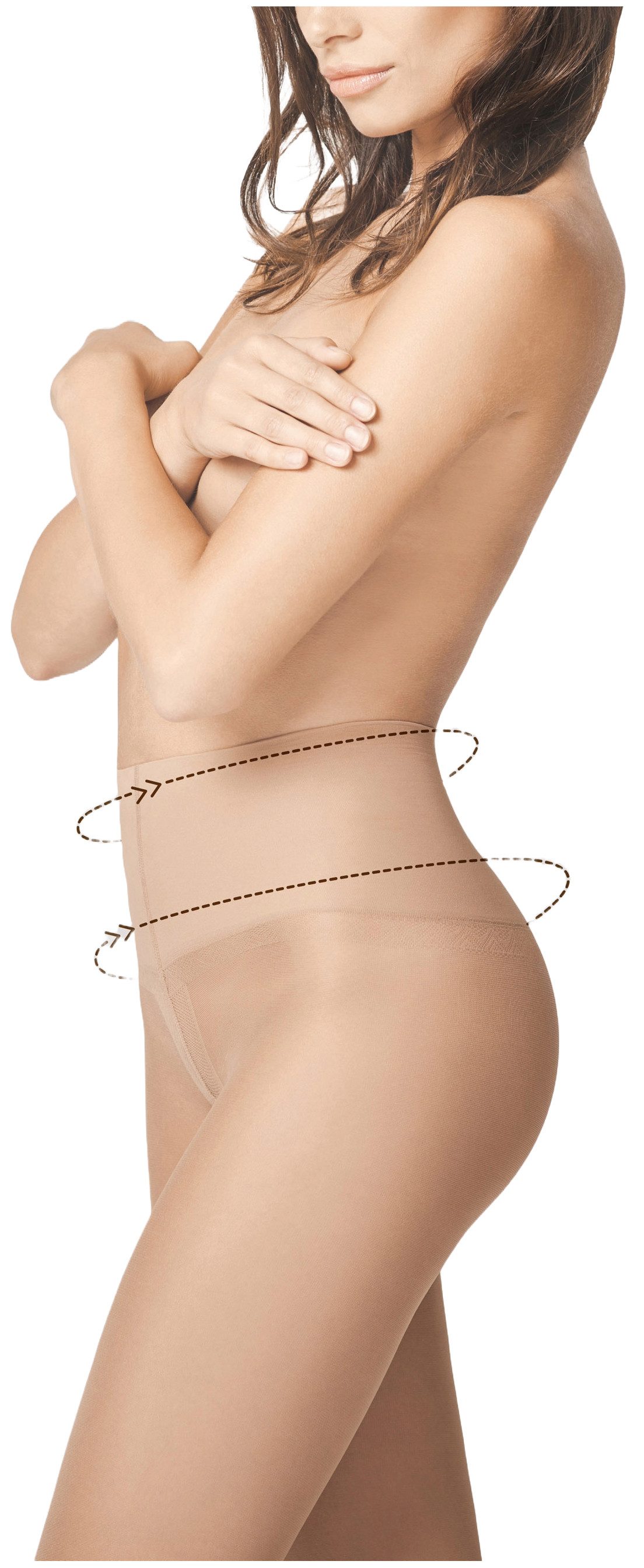 Die figurformenden Strumpfhosen bieten eine gezielte Korrektur der Bauchlinie und schmeicheln der Silhouette, indem sie störende "Röllchen" um die Taille effektiv minimieren. Der enthaltene Koffeinextrakt verleiht nicht nur einen belebenden Effekt, sondern regt auch an und vermittelt müden Beinen ein Gefühl von Leichtigkeit.
