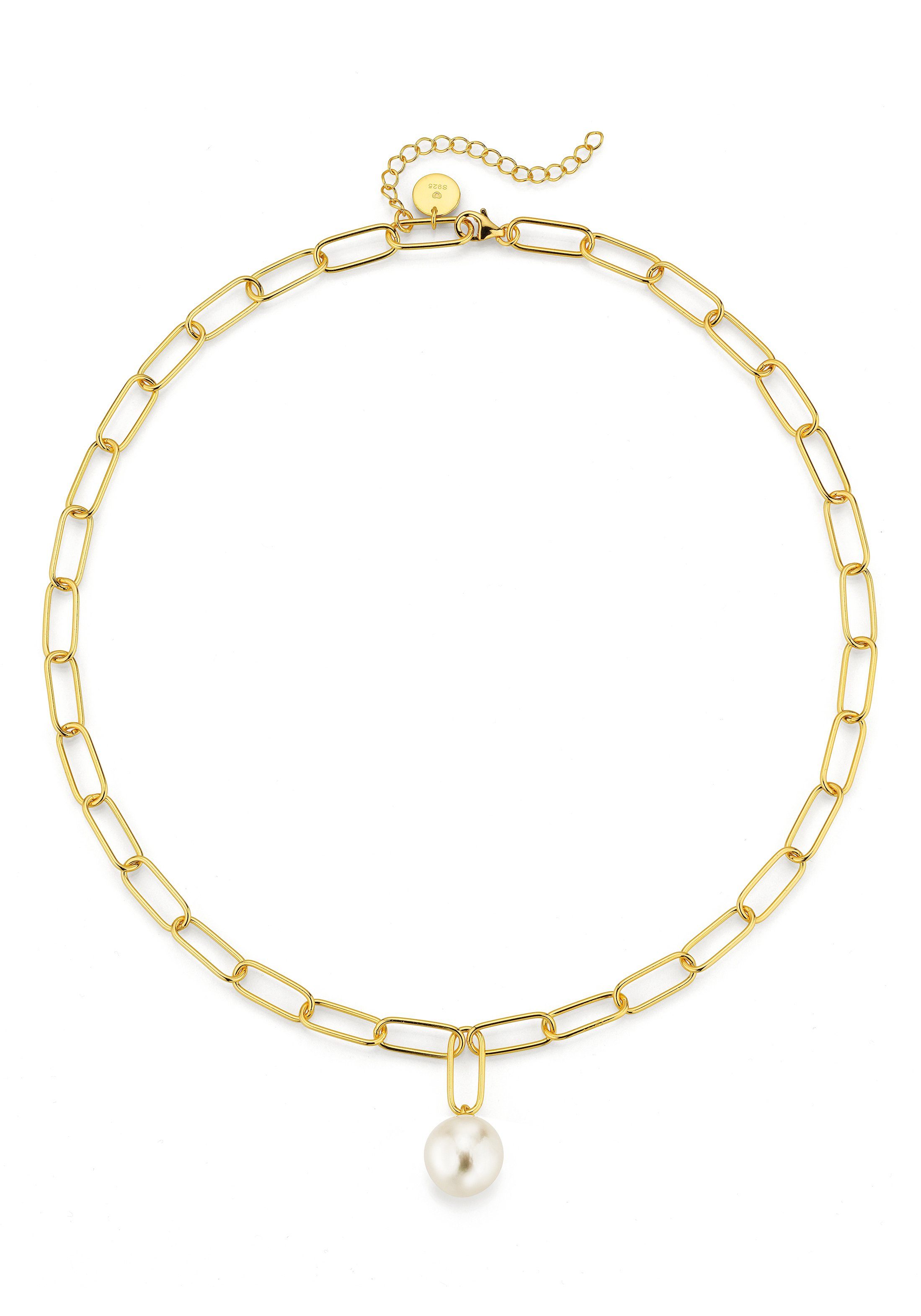 Diese tolle Gliedergette aus vergoldetem Silber 925-/ mit einer weißenSüßwasser Barock Zuchtperle als Anhänger werden Sie lieben. Diese Kette eignet sich hervorragend zum Kombinieren mit anderen Ketten und Perlencolliers. Lassen Sie Ihren Fantasien freien lauf. Всеs ist möglich.