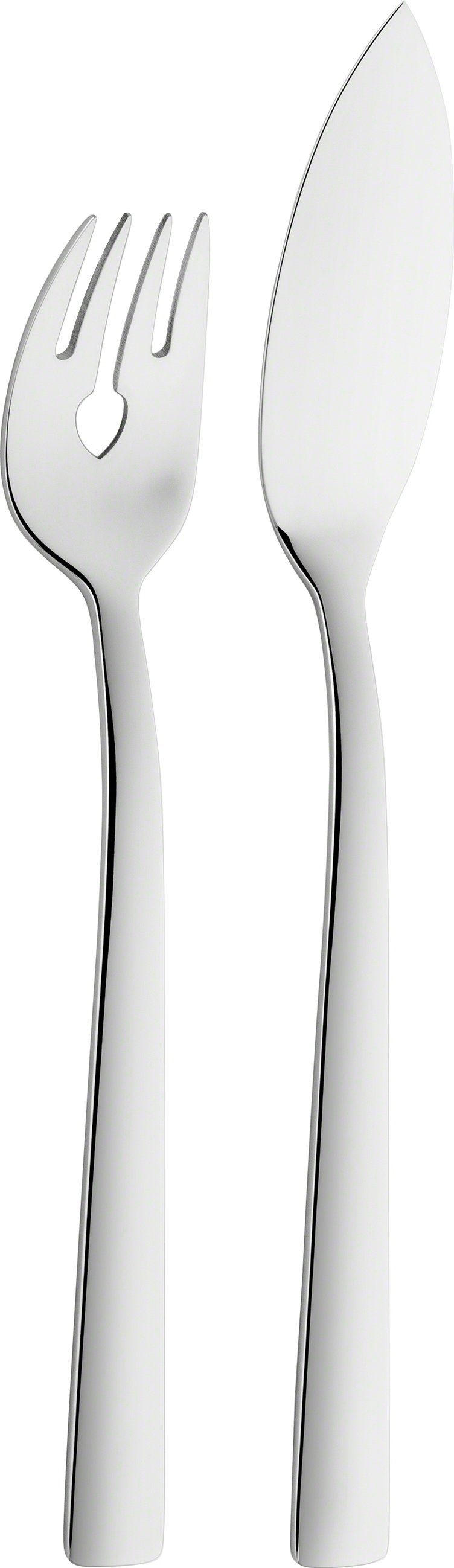 Zwilling Besteck Dinner 2 tlg. Fischset 220 mm Um Fisch sorgfältig zerkleinern und von Gräten befreien zu können, ist das 2-teilige Fischbesteck von ZWILLING bestens geeignet. Es besteht aus einer breitzinkigen Gabel mit Grätenloch, das das Entfernen der Mittelgräte erleichtert, und aus einem Fischmesser mit flächiger Klinge zum schonenden Zerteilen. Das Fischbesteck aus rostfreiem 18/10-Edelstahl weist eine hochglanzpolierte Oberfläche auf und ist zudem spülmaschinengeeignet. Mit diesem edlen Fischbesteck aus der Serie ZWILLING Dinner wird Ihnen der Verzehr von Fischspeisen aller Art erleichtert. Zeitloses Design - passend als Ergänzung zu praktisch jeder ZWILLING Besteckserie Hergestellt aus hochwertigem und rostfreiem 18/10 Edelstahl Polierte Oberfläche Spülmaschinengeeignet Длина: 22 cm Teiligkeit: 2-tlg