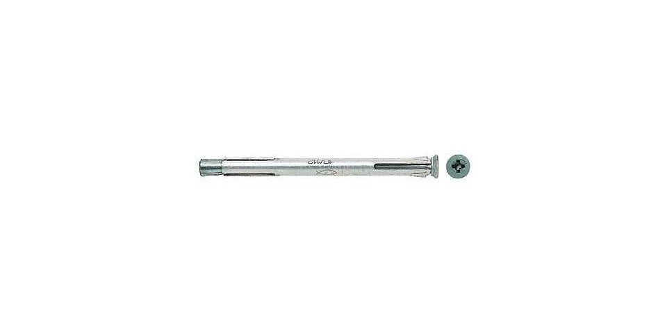 Der Fischer Metallrahmendübel F 10 M ist ein Spezialdübel zur spannungsfreien Abstandsmontage von Fenster- und Türrahmen. Dieser besteht aus einer Metallhülse und einer Senkkopfschraube aus galvanisch verzinktem Stahl. Der F 10 M wird zeitsparend in der Durchsteckmontage gesetzt. Beim Anziehen der Schraube wird der Konus in die Dübelhülse gezogen, spreizt auf und verspannt sich gegen die Bohrlochwand. Dadurch wird der Fensterrahmen spannungsfrei in Voll- und Lochbaustoffen befestigt. Der Fischer Metallrahmendübel F 10 M ist neben der Befestigung von Fenster- und Türrahmen auch für Kanthölzer geeignet.
