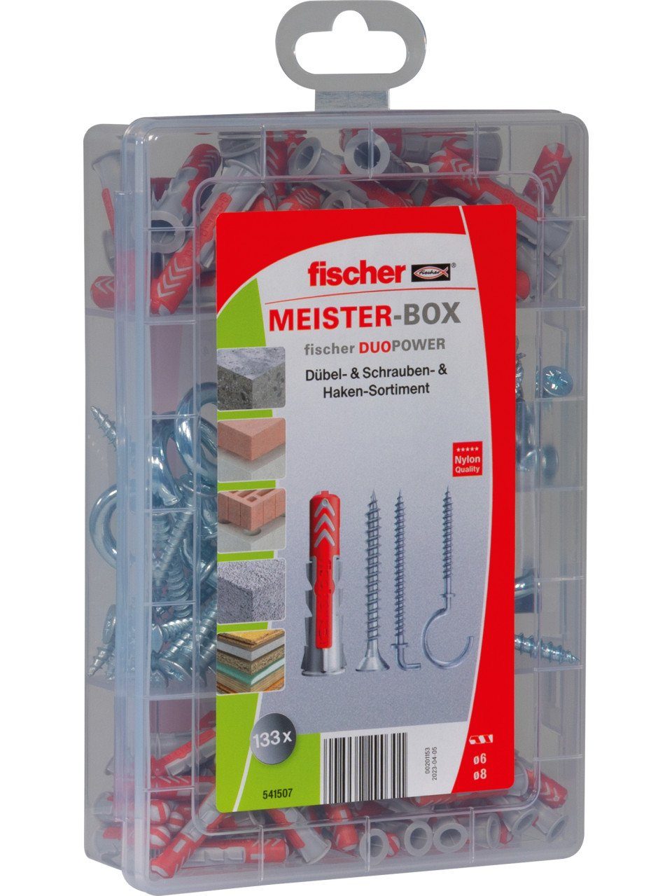 Produktdetails: Maße Dübel: 6.0 x 30 mm, 8.0 x 40 mm | Maße Schrauben: 4.5 x 40 mm, 5.0 x 55 mm | Inhalt: 133 Stück | Maße Haken: 5.5 x 58 mm, 5.5 x 77 mm | Art des Dübels: Universaldübel | Ausführung des Dübels: mit Rand | Geeignet für: Beton, Vollziegel, Kalksand-Vollstein, Porenbeton, Hochlochziegel, Kalksand-Lochstein, Gipsbauplatte, Gipskarton - und Gipsfaserplatten, Hohlblock aus Leichtbeton, Hohldecken aus Ziegel, Beton o. ä., Naturstein, Spanplatten, Vollgips-Platten, Vollstein aus Leichtbeton | Passend für: Holz- und Spanplattenschrauben sowie Stockschrauben | Befestigung von: Leichte Wandregale, Leichte Spiegelschränke, Gardinenschienen, Blumenampeln, Elektroinstallationen, Wanduhren | Montageart: Vorsteck- und Durchsteckmontage | Material: Kunststoff | Farbe: grau | Verpackung: stabile Aufbewahrungsbox | Lieferumfang: 50 Dübel Duopower 6.0 x 30 mm, 30 Dübel Duopower 8.0 x 40 mm, 30 Senkkopfschrauben 4.5 x 40 mm, 15 Senkkopfschrauben 5.0 x 55 mm, 4 Haken 5.5 x 58, 4 Rundhaken 5.5 x 77 |