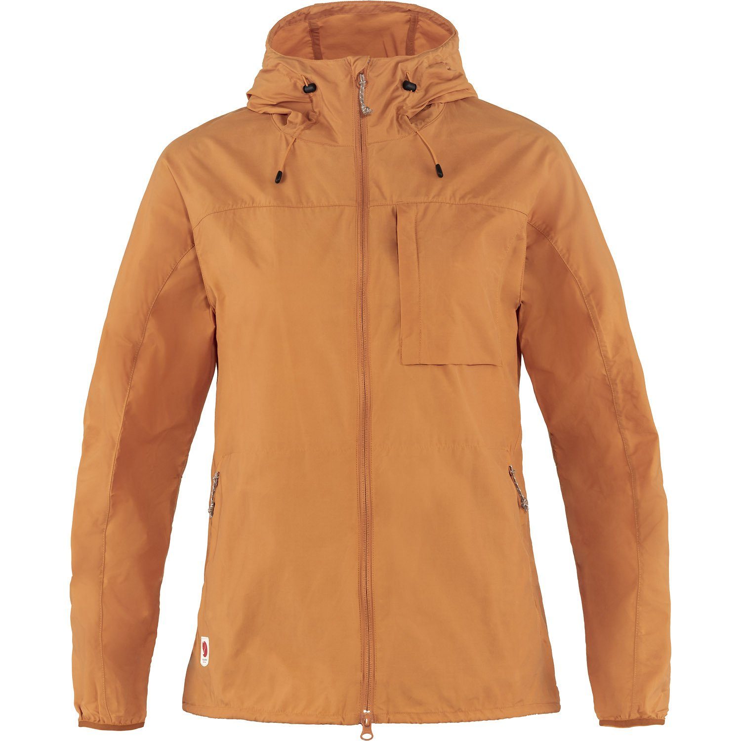 Leichte, anschmiegsame Fjällräven Windjacke High Coast Wind Jacket W mit guten Packeigenschaften, aus gewachster Polyamid/Bio-Baumwollmischung gefertigt. Das wasserabweisende Material hält leichten Regen ab und trocknet schnell, falls es einmal nass wird. Ein praktischer Begleiter, der schnell zur Hand ist, wenn es beim Wandern, Paddeln oder Radfahren kühler wird. Um Gewicht zu sparen, wurde das Design bewusst auf das Wesentliche reduziert. Die verstellbare Kapuze bietet beste Passform, der Frontreißverschluss ist mit einer Windschutzleiste unterlegt. Eine vertikale Brusttasche auf der linken Seite bietet Platz für alle Kleinigkeiten, die unterwegs schnell zur Hand sein sollen. Die Wachsimprägnierung schützt vor leichten Regenschauern, Platz- oder Dauerregen ist die Jacke aber nicht gewachsen.