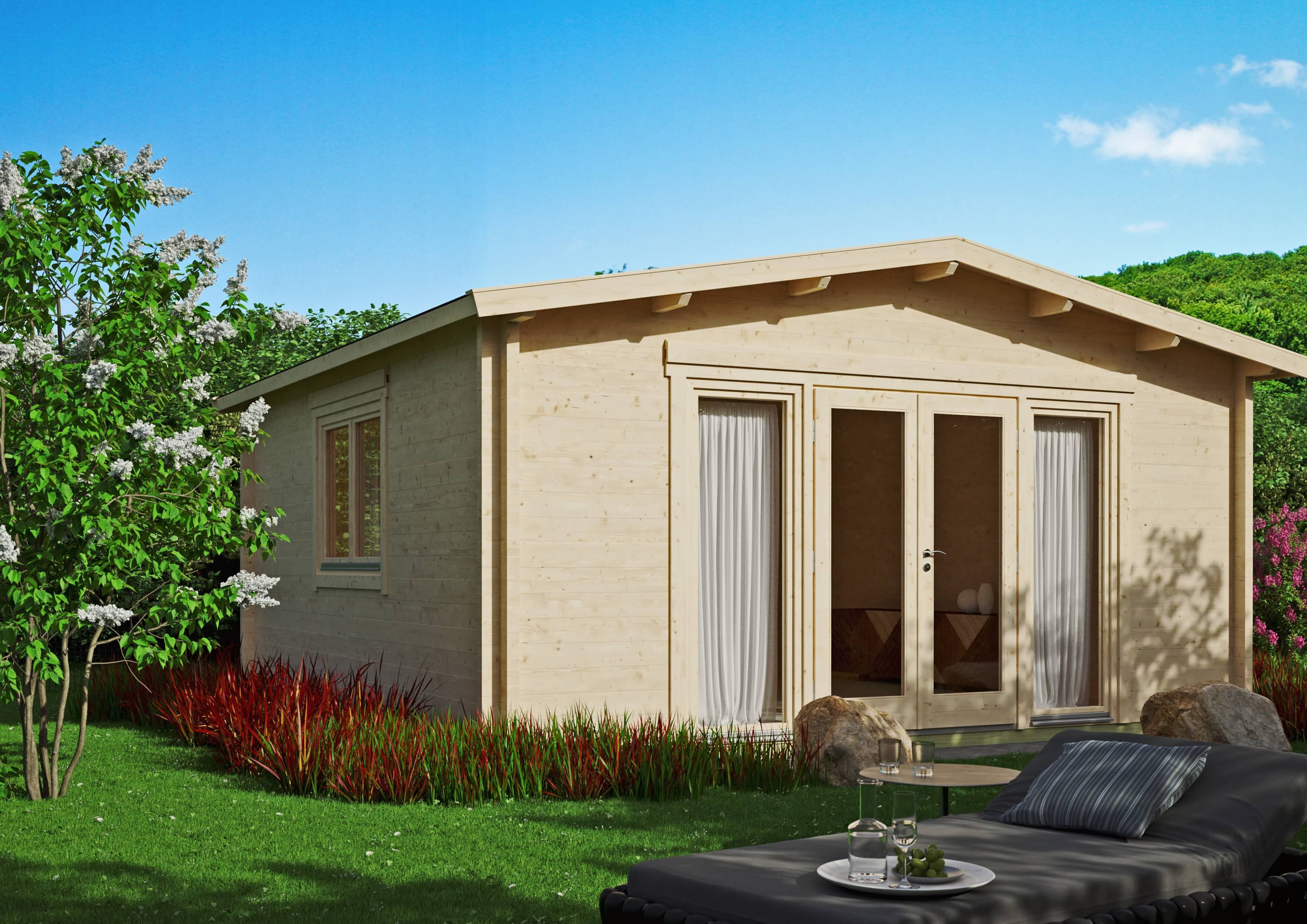 Satteldach Gartenhaus Modell Kim 70 H Lieferbar ab Februar 2022 * massive 70mm starke Wandbohlen aus nordischer Fichte naturbelassen mit 4-fach Eckausfräsung * Massivholz-Dach aus 18mm starken Nut- und Federbrettern * extra starke Dachkonstruktion auch für höhere Schnee- und Windlastzonen geeignet * Massivholz-Fußboden aus 28mm starken Nut- und Federbrettern inkl. Fußleisten * imprägnierte Fundamentbalken als Unterkonstruktion * extra hohe Seitenwände für mehr Raumhöhe * 1x extra hohe Doppeltür mit zwei zusätzlichen Fensterelementen (ca. 200 cm Durchgangshöhe) * hochwertiger Edelstahl Türdrücker mit PZ-Schloß inkl. 3 Schlüsseln * hochwertige Edelstahltürschwelle für den leichten Einstieg * 1x Doppelfenster mit Dreh/Kipp-Funktion * Aluminium Wasserschenkel an den Fenstern * Verglasung der Türen und Fenster aus Isolierglas * Gummidichtungen bei den Türen und Türen * Innenliegende Gewindestangen für eine perfekte Wind- und Sturmsicherung * hochwertiges Montagematerial & Aufbauplan * ohne Dacheindeckung ( optional als Zubehör erhältlich)
