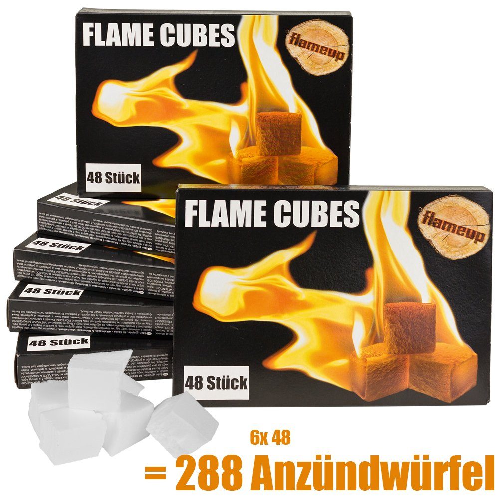 Geben Sie einen oder mehrere Würfel auf eine kleine Lage Brennstoff (Holz, Kohle) und zünden Sie diese an. Die Anzünder 1-2 Minuten brennen lassen.