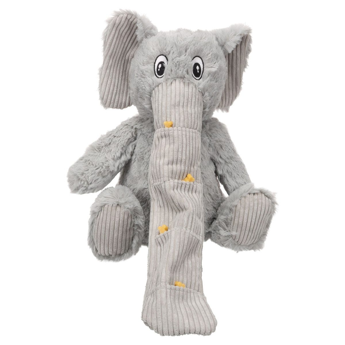 Das Flamingo Hundespielzeug Hida Elefant in stilvollem Grau bietet endlosen Spielspaß für Ihren Hund. Dieses niedliche Hundespielzeug ist aus weichem Plüsch gefertigt und mit Cord-Details veredelt. Der Bauch des Elefanten lässt sich mit leckeren Snacks befüllen, was das Interesse und die Neugier Ihres Hundes zusätzlich anregt.