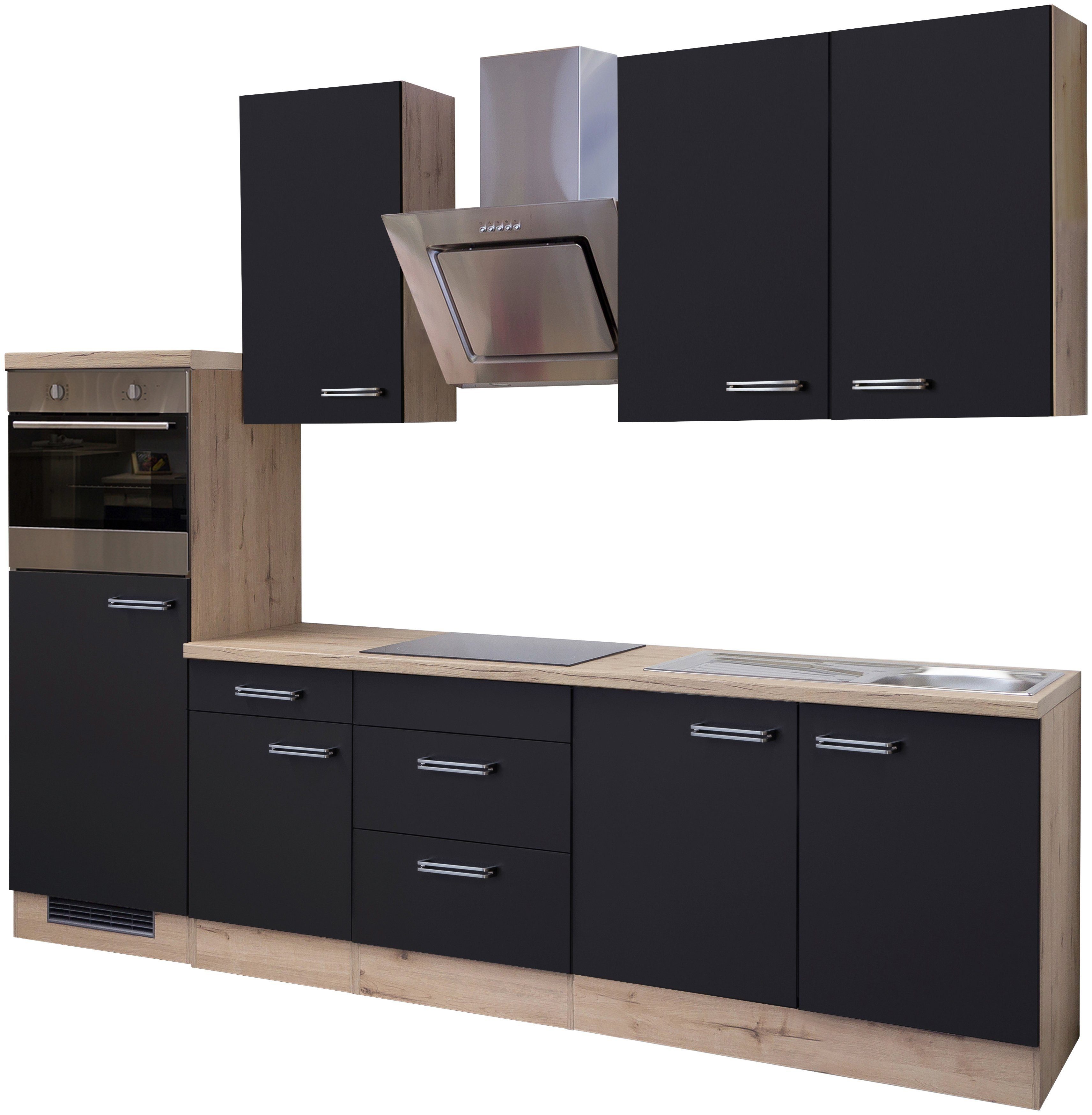 Set beinhaltet | Produktdetails Gesamtbreite: 270 cm Türanschlag: beliebig Frontdekor: anthrazit Frontmaterial: melaminbeschichtete Spanplatte Korpusdekor: eichefarben hell Korpusmaterial: melaminbeschichtete Spanplatte Sockelhöhe: 13,6 cm Sockel nicht verstellbar höhenverstellbare Füße: Nein Setdetails Hängeschrank Maße (B/T/H): 50/32/89 cm Türanschlag: wechselbar Anzahl Türen: 1 Anzahl Einlegeböden: 2 Anzahl Fächer: 2 Hängeschrank Maße (B/T/H): 50/32/89 cm Anzahl Türen: 1 Anzahl Einlegeböden: 2 Hängeschrank Maße (B/T/H): 50/32/89 cm Anzahl Türen: 1 Anzahl Einlegeböden: 2 Unterschrank Material: melaminbeschichtete Spanplatte Maße (B/T/H): 50/60/82 cm Türanschlag: wechselbar Anzahl Türen: 1 Anzahl Schubladen: 1 Schubkasteninnenmaß (B/T/H): 43,3/38,3/0,75 cm Anzahl Einlegeböden: 1 Anzahl Fächer: 2 Kochfeldunterschrank Anzahl Auszüge: 2 Auszugsinnenmaß (B/T/H): 53,4/45/24 cm Maße (B/T/H): 60/60/86 cm Auszugsschrank Maße (B/T/H): 60 cm Material: melaminbeschichtete Spanplatte Anzahl Einlegeböden: 2 Spülenschrank Maße (B/T/H): 100/60/82 cm Anzahl Türen: 2 Spülenmaße: 86x43,5 cm Umbauschrank für Ofen und Kühlschrank Maße (B/T/H): 60/60/169,5 cm Einbau-Fachmaß Kühlschrank (B/T/H): 56/55/88 cm Mit Arbeitsplatte Einbau-Fachmaß Ofen (B/T/H): 56,7/55,5/59,0 cm Arbeitsplatte Arbeitsplattendekor: eichefarben Ausführung: Ohne Ausschnitte Maße (L/B/H): 210x60x3,8 cm |