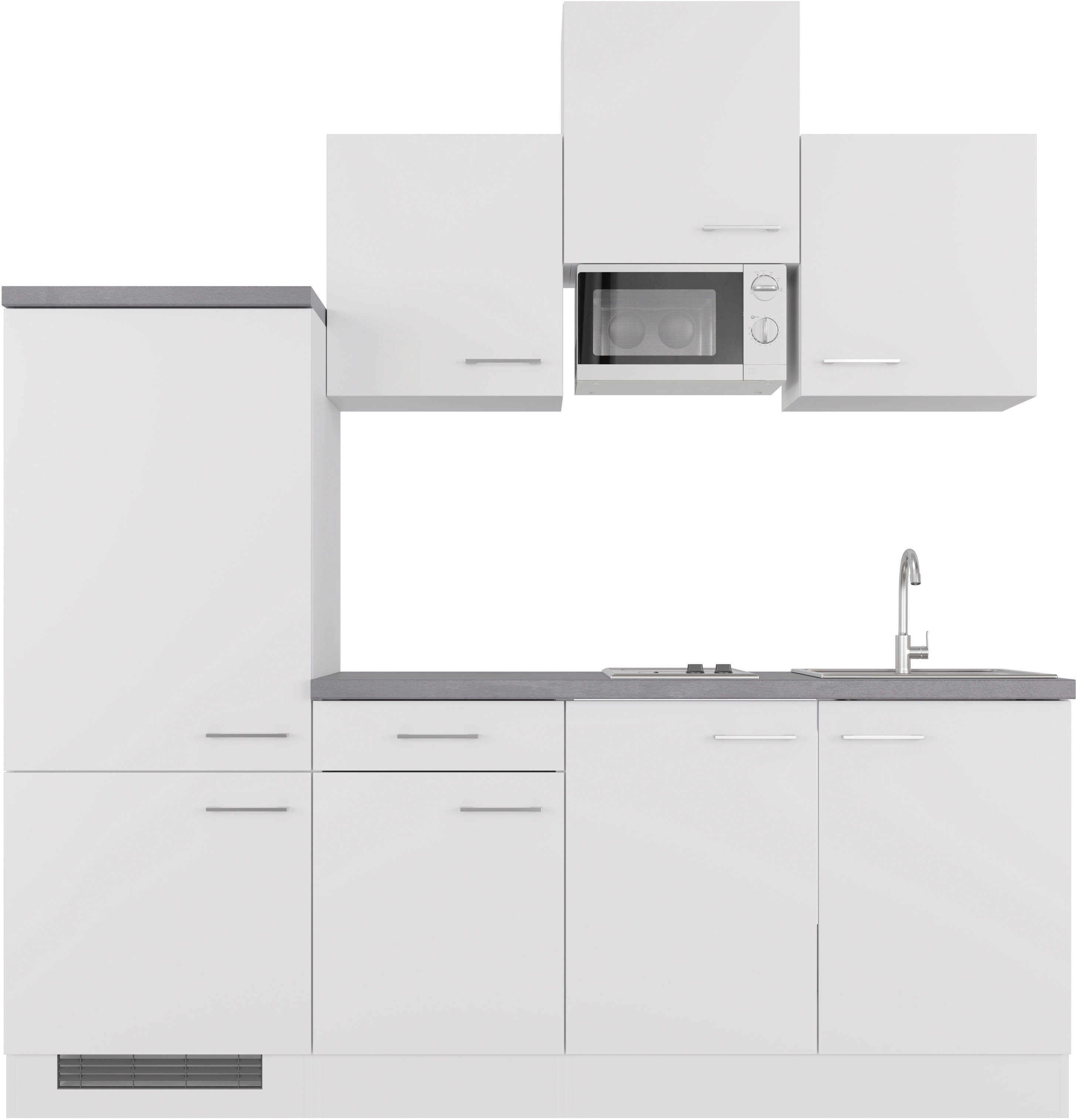 Ausstattung | Durchgehende Arbeitsplatte Einlegeböden höhenverstellbar Laufleisten der Schubkästen aus Metall Metallgriffe Seitenverkehrt stellbar Sockelhöhe nicht verstellbar inkl. Edelstahl-Einbauspüle, ohne Abtropffläche mit E-Geräten weitere Informationen zu Elektrogeräten: siehe Спецификации товара (на немецком) |