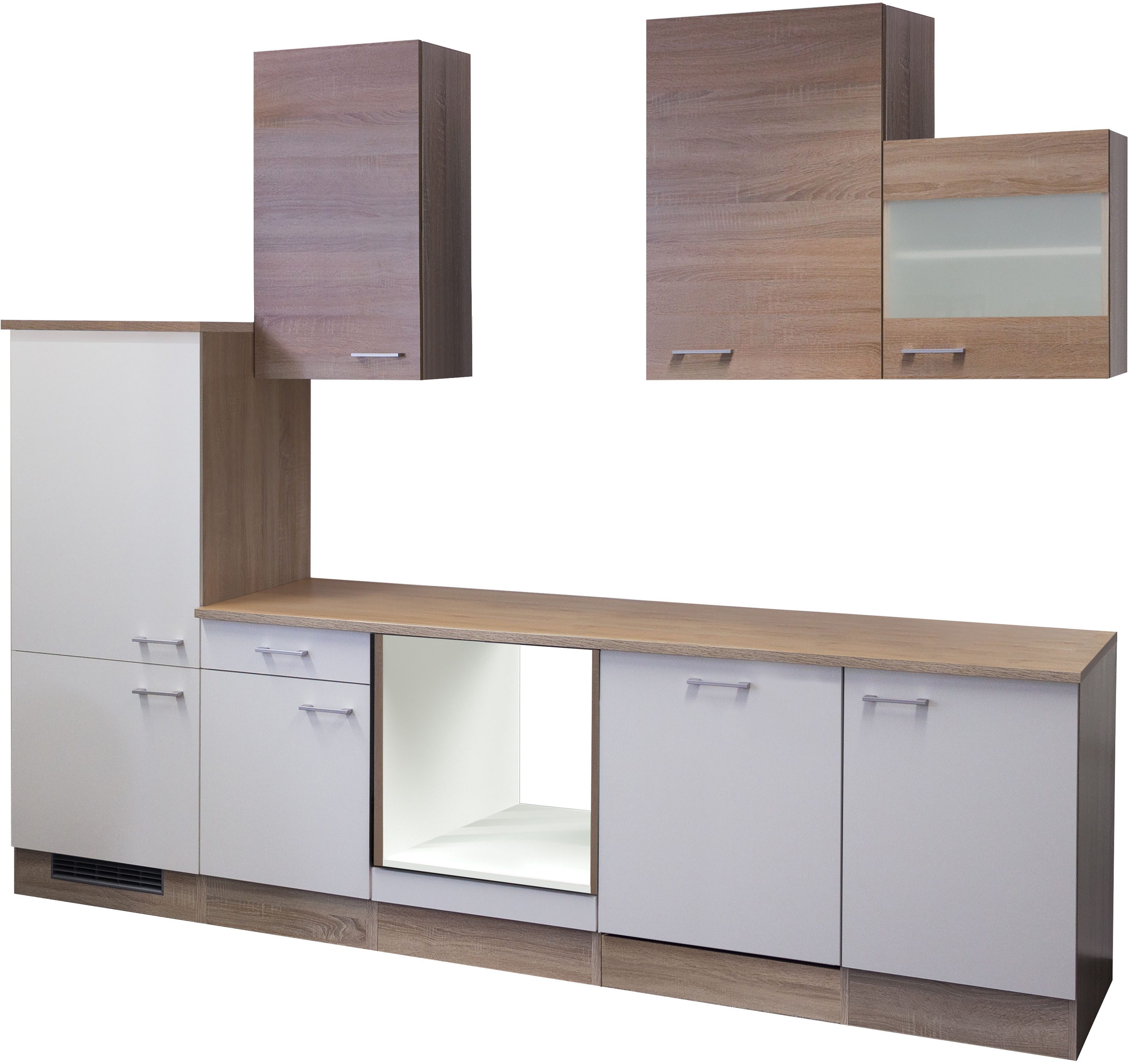 Hinweis Farbe | Все Hoch- und Unterschränke im Programm SAMOA haben weiße Fronten. Die Hängeschränke haben den Frontfarbton Sonoma Eiche. |