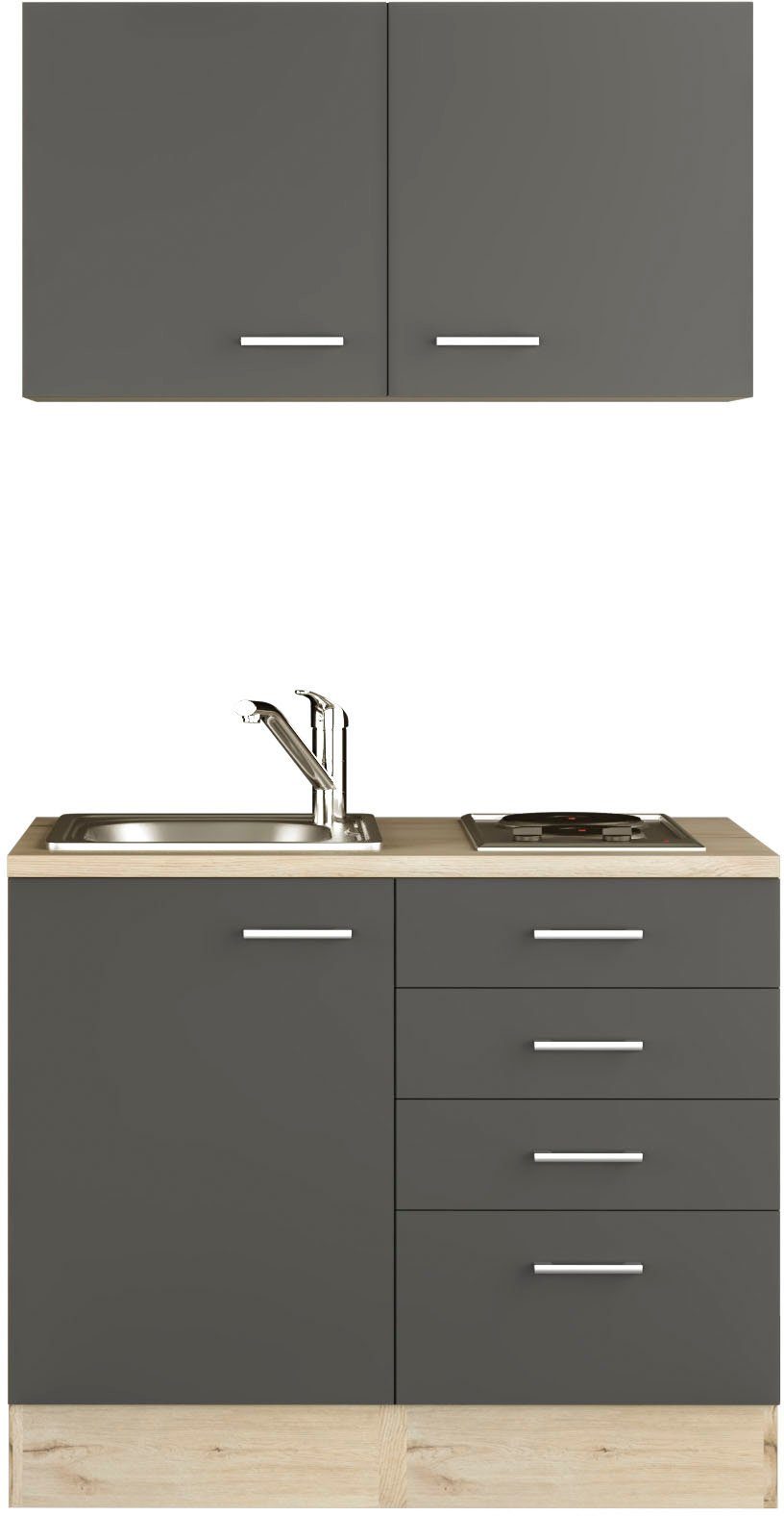 Ausstattung | Durchgehende Arbeitsplatte Einlegeböden höhenverstellbar Laufleisten der Schubkästen aus Metall Seitenverkehrt stellbar Sockelhöhe nicht verstellbar Stabile Metallauszüge inkl. Edelstahl-Einbauspüle, ohne Abtropffläche mit E-Geräten weitere Informationen zu Elektrogeräten: siehe Спецификации товара (на немецком) |