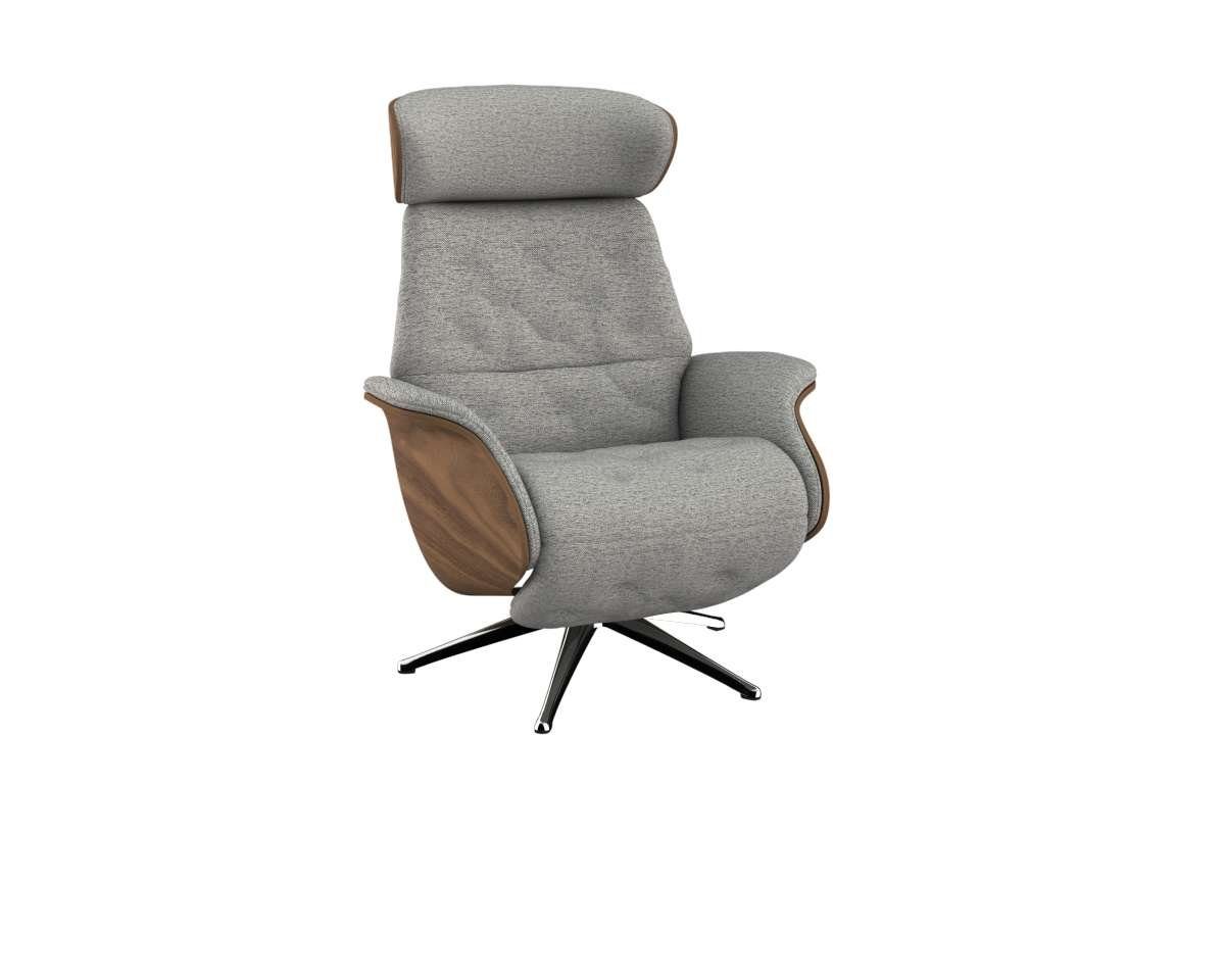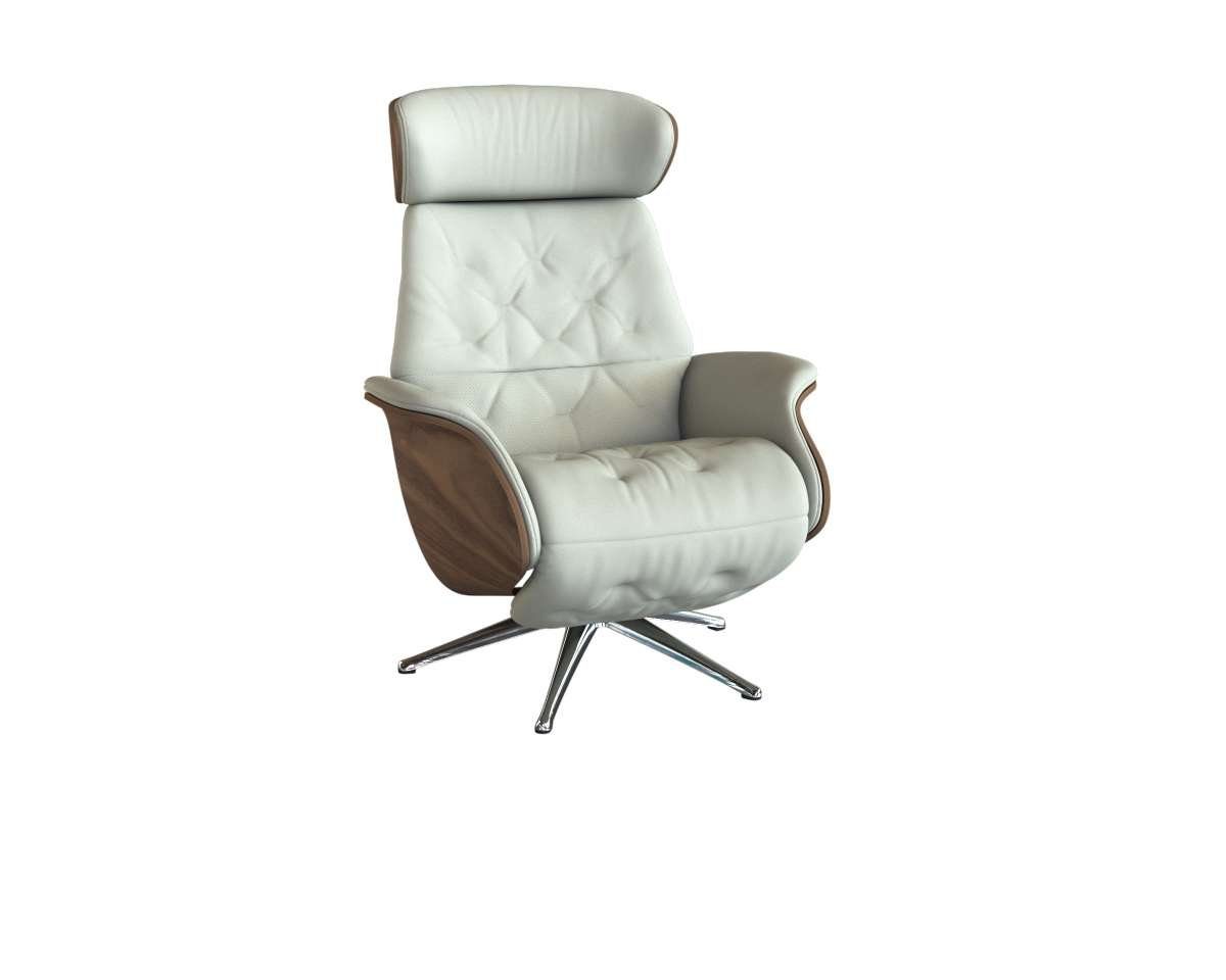Volden ist ein elektrischer Relaxsessel. Die Funktionssteuerung kann mit Hilfe von Bedientasten betätigt werden. Diese befinden sich unter der Armlehne rechts. Die Rückenlehnenneigung und die Fußstütze lassen sich getrent voneinander, saft und mühelos elektrisch einstellen. Die Verwendung ist im Kabel- und Akkubetrieb möglich, damit Sie jeden Moment genießen können. Die Kopfstütze ist in der Höhe und Neigung manuell verstellbar, um die beste Position zum Lesen, Fernsehen oder Entspannen zu erreichen. Der Sessel ist mit eine Seitenblende in Eiche- oder Nussbaum-Furnier, sowie eleganten Füßen in schwarzem oder poliertem Aluminium bestellbar.