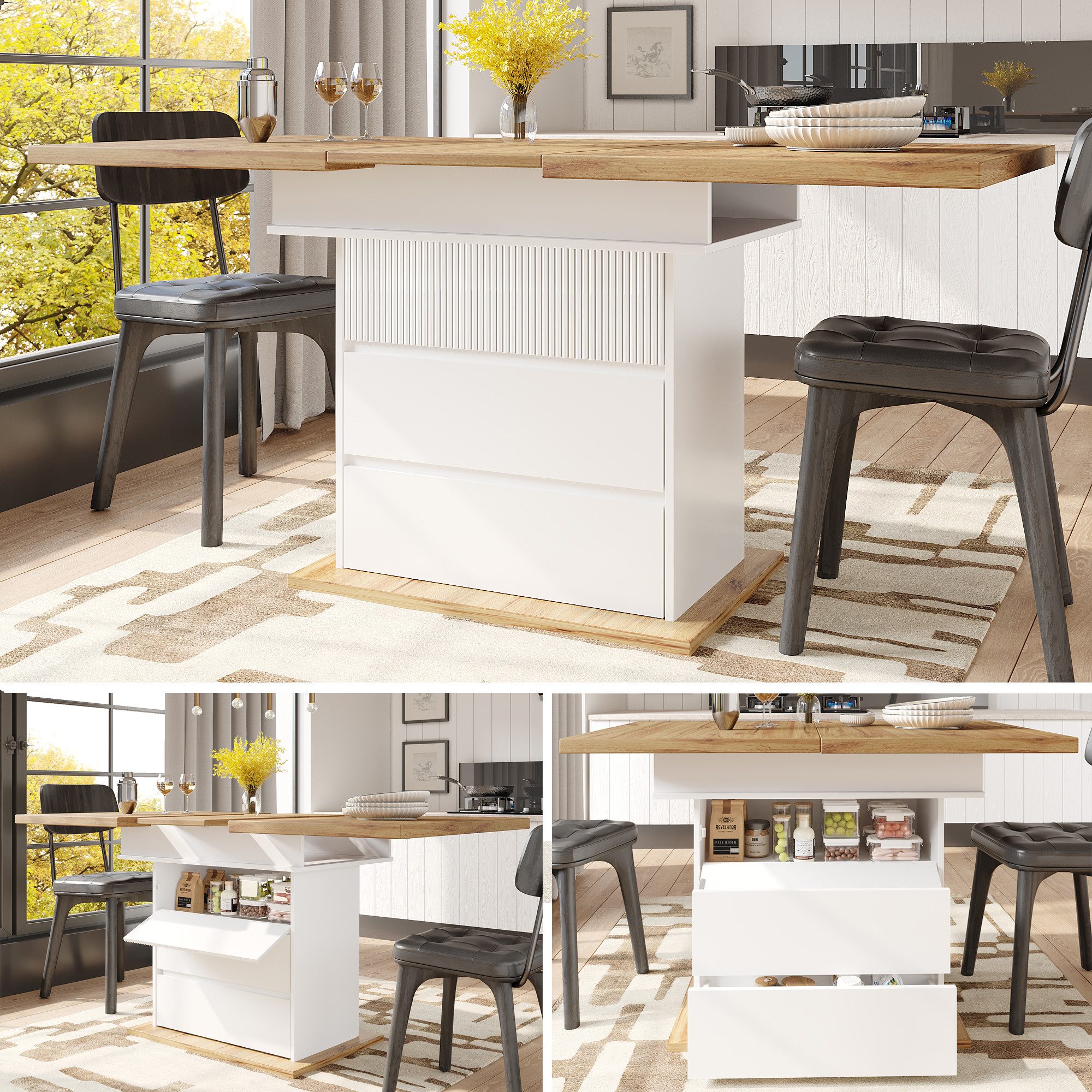 Praktischer Stauraum: Versteckter Aufbewahrungsbereich unter der Tischplatte.